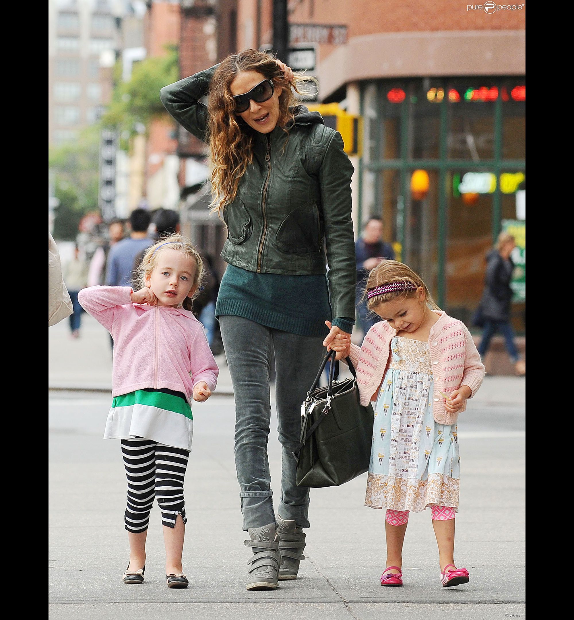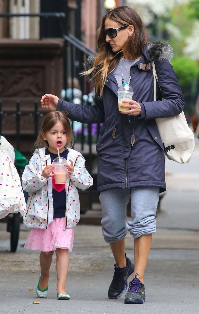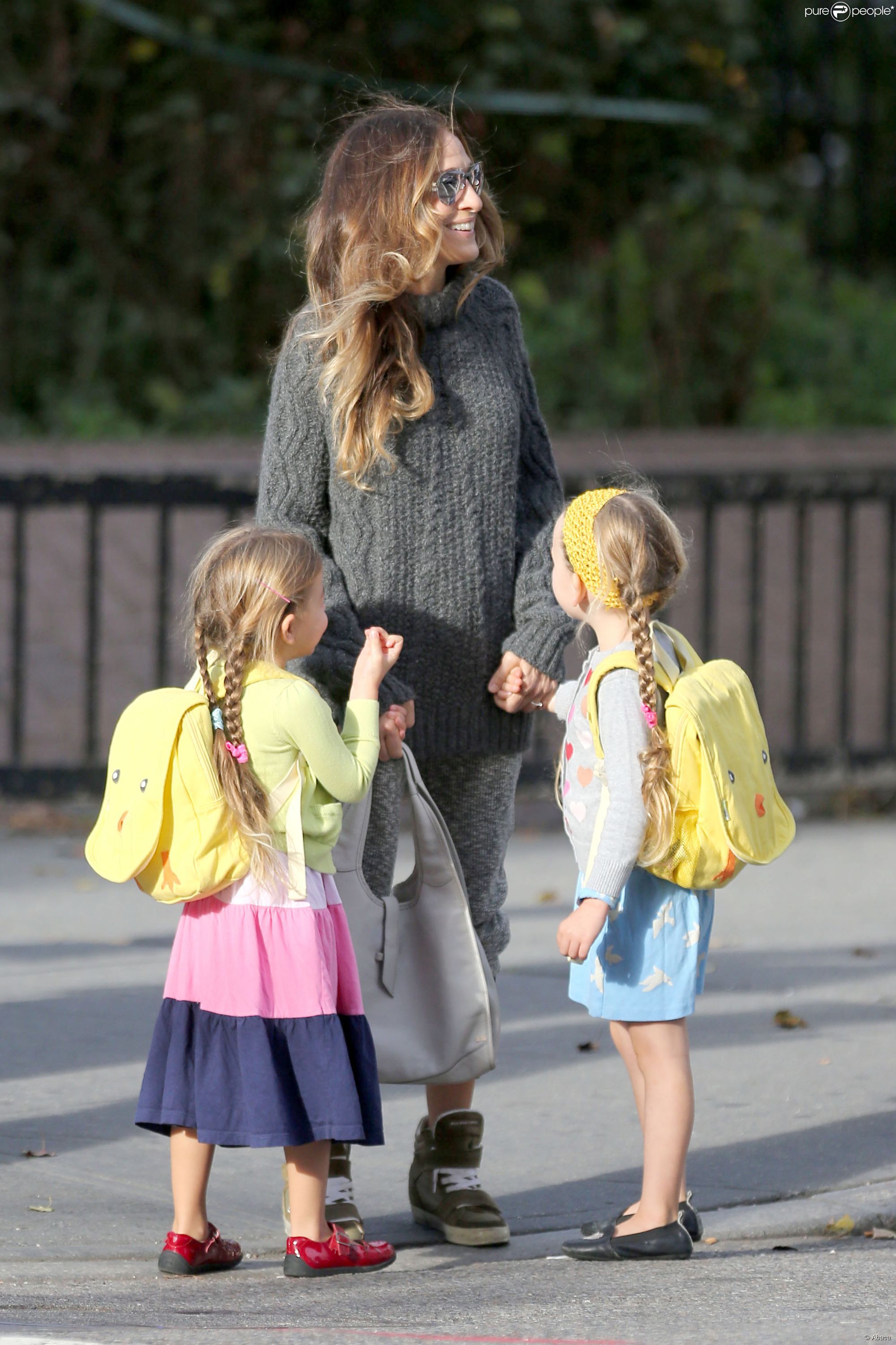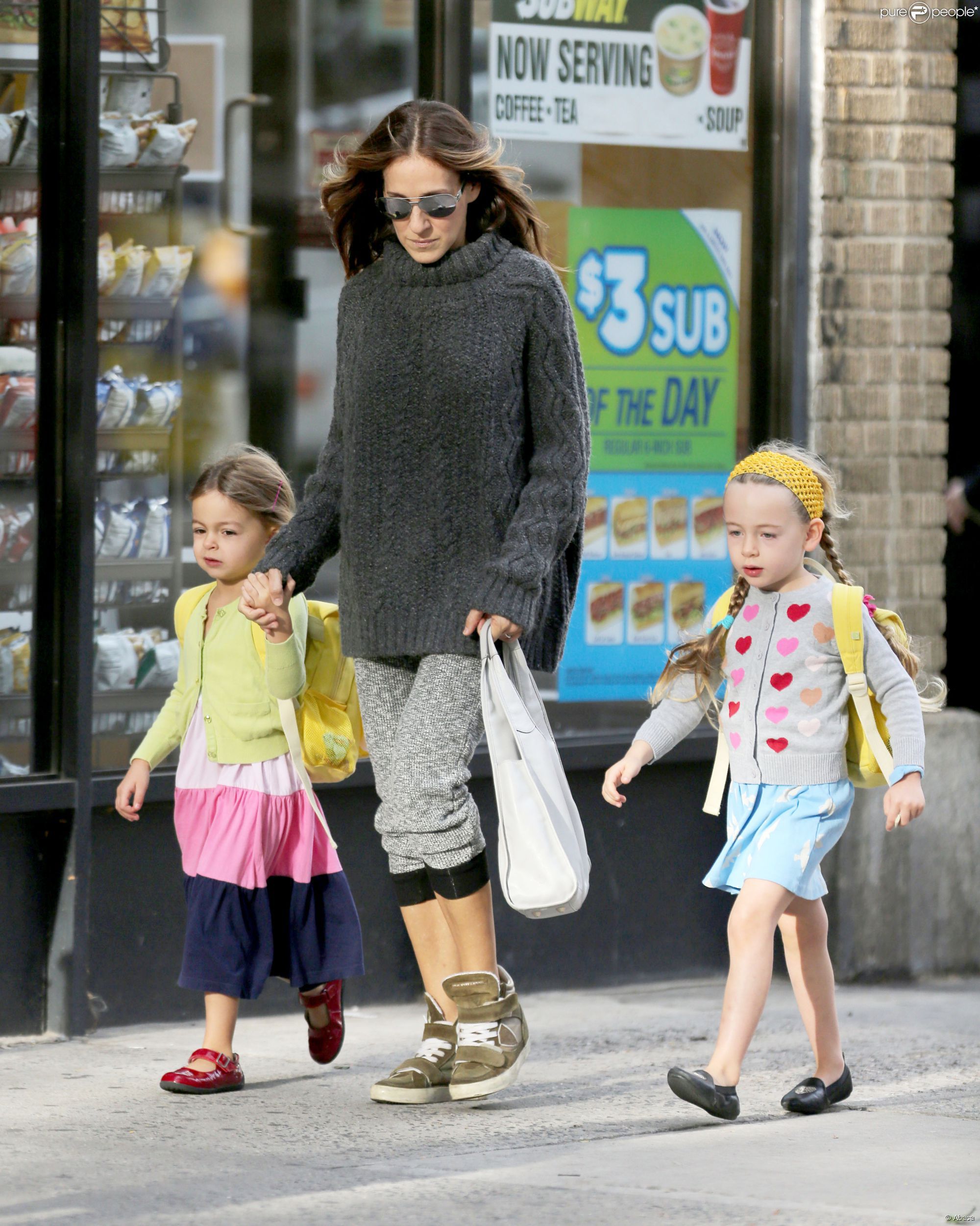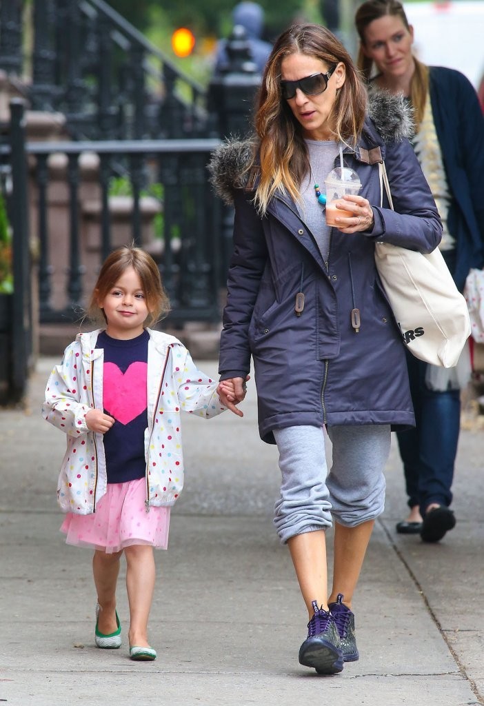 Taking her kids to school in NYC-May 9,2014.