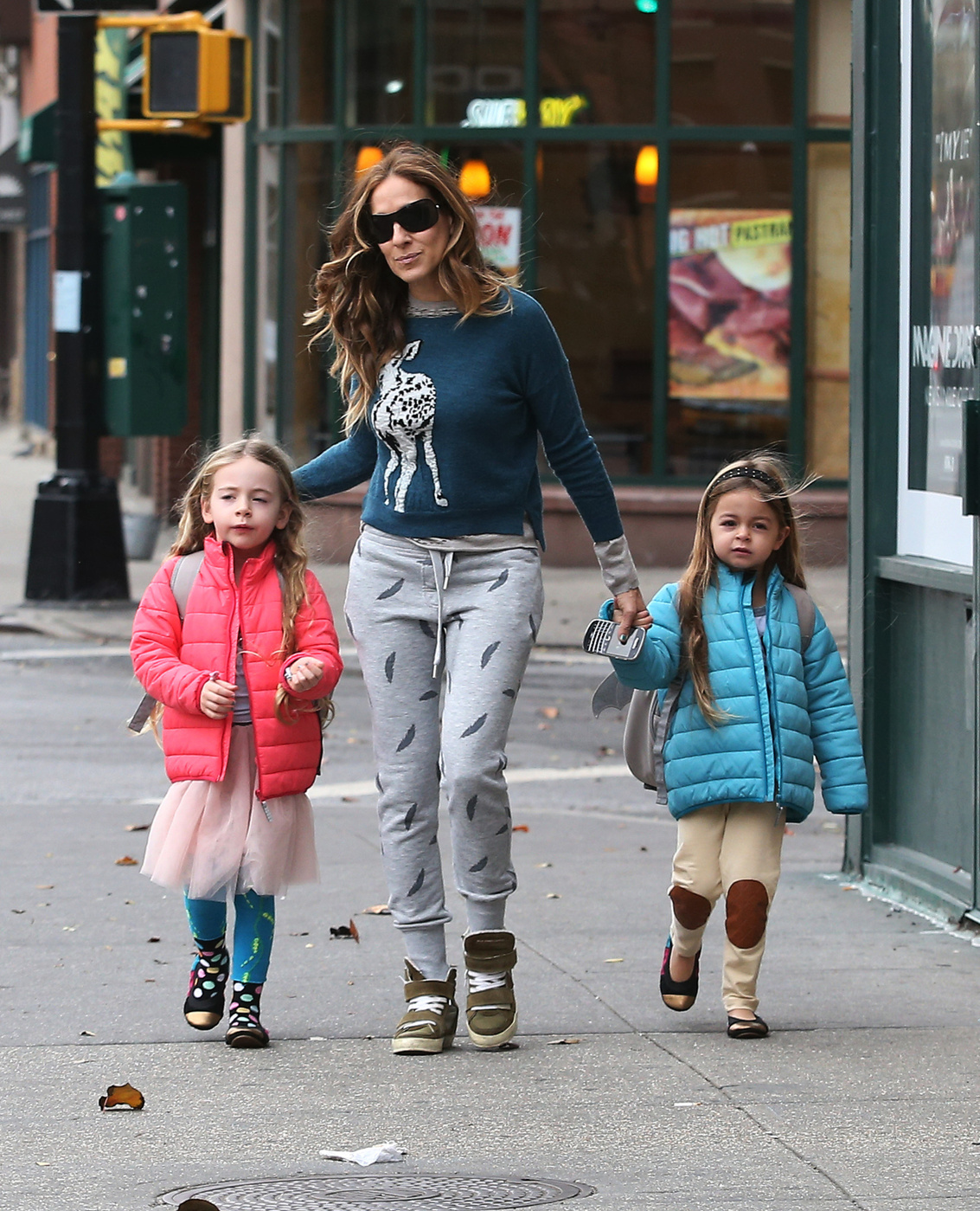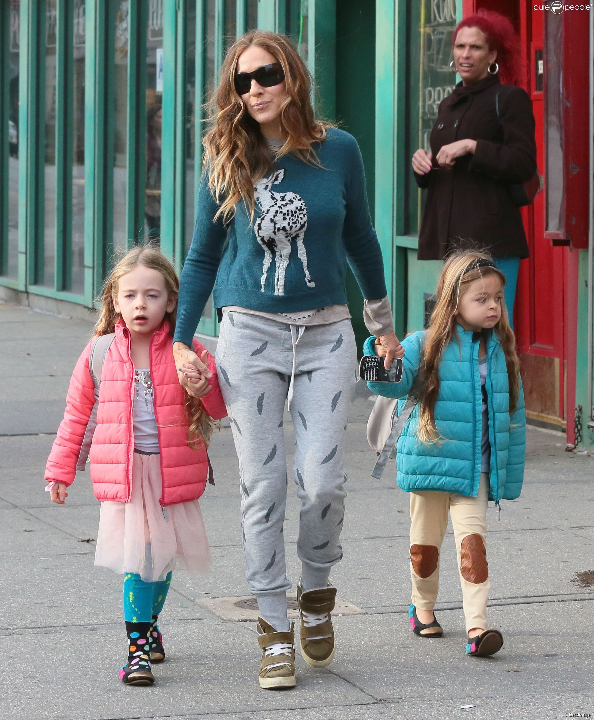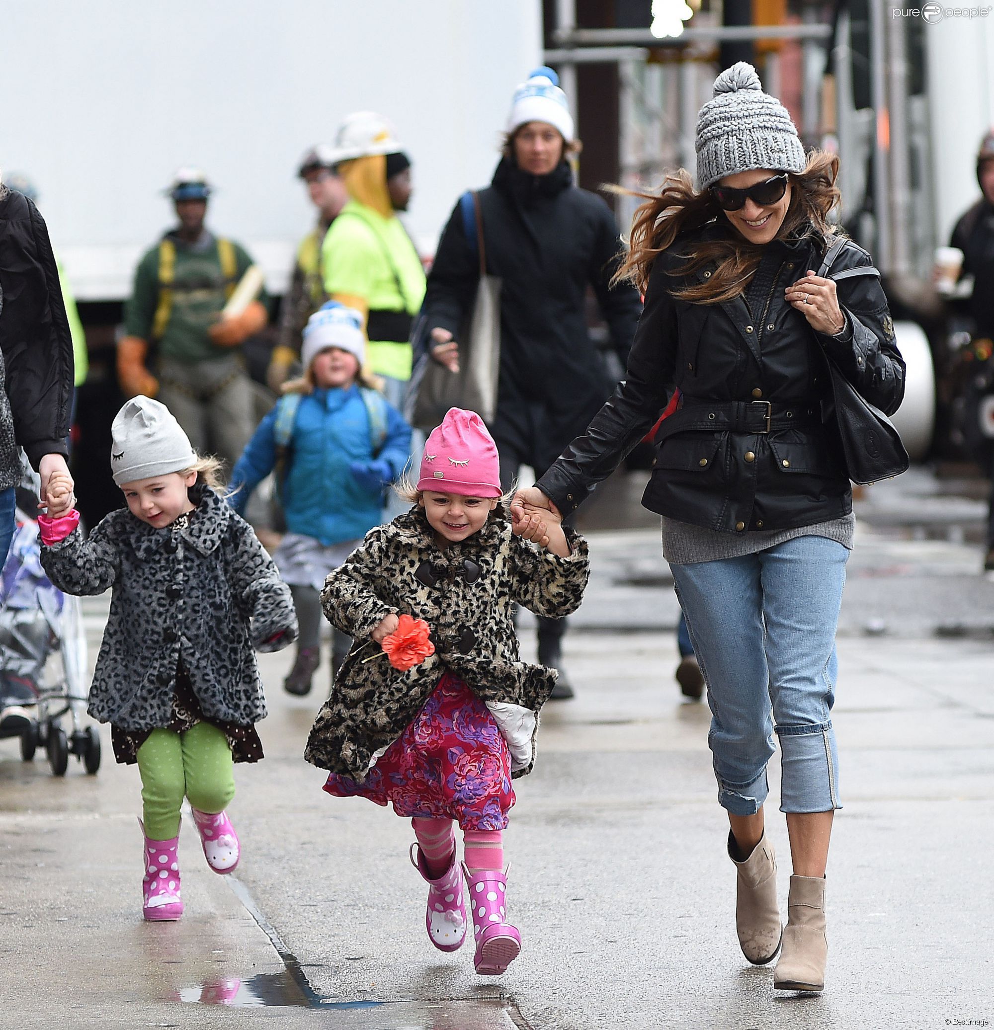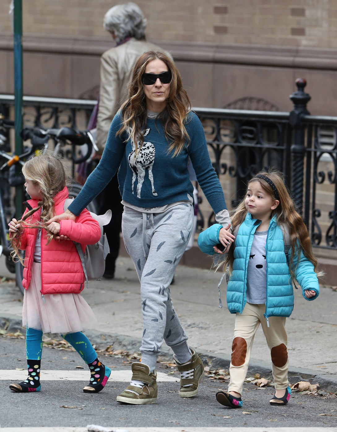 Taking her kids to school in NYC-May 9,2014.