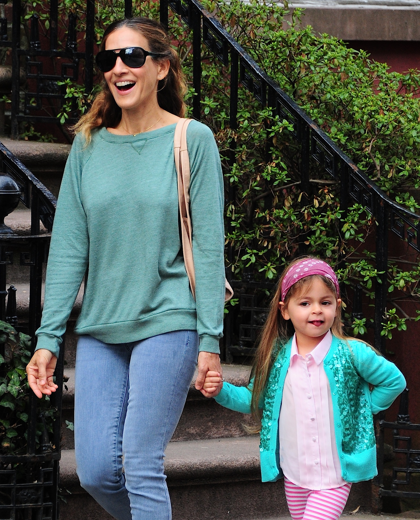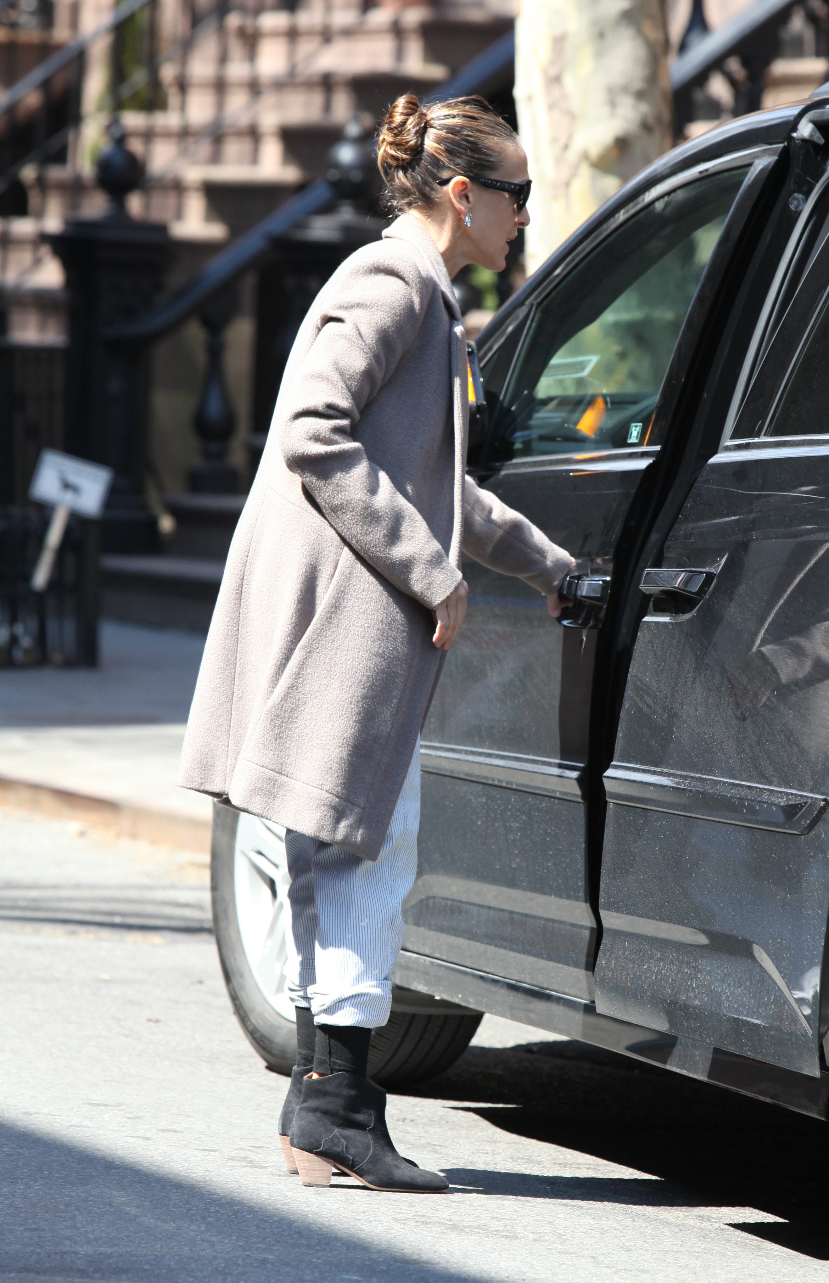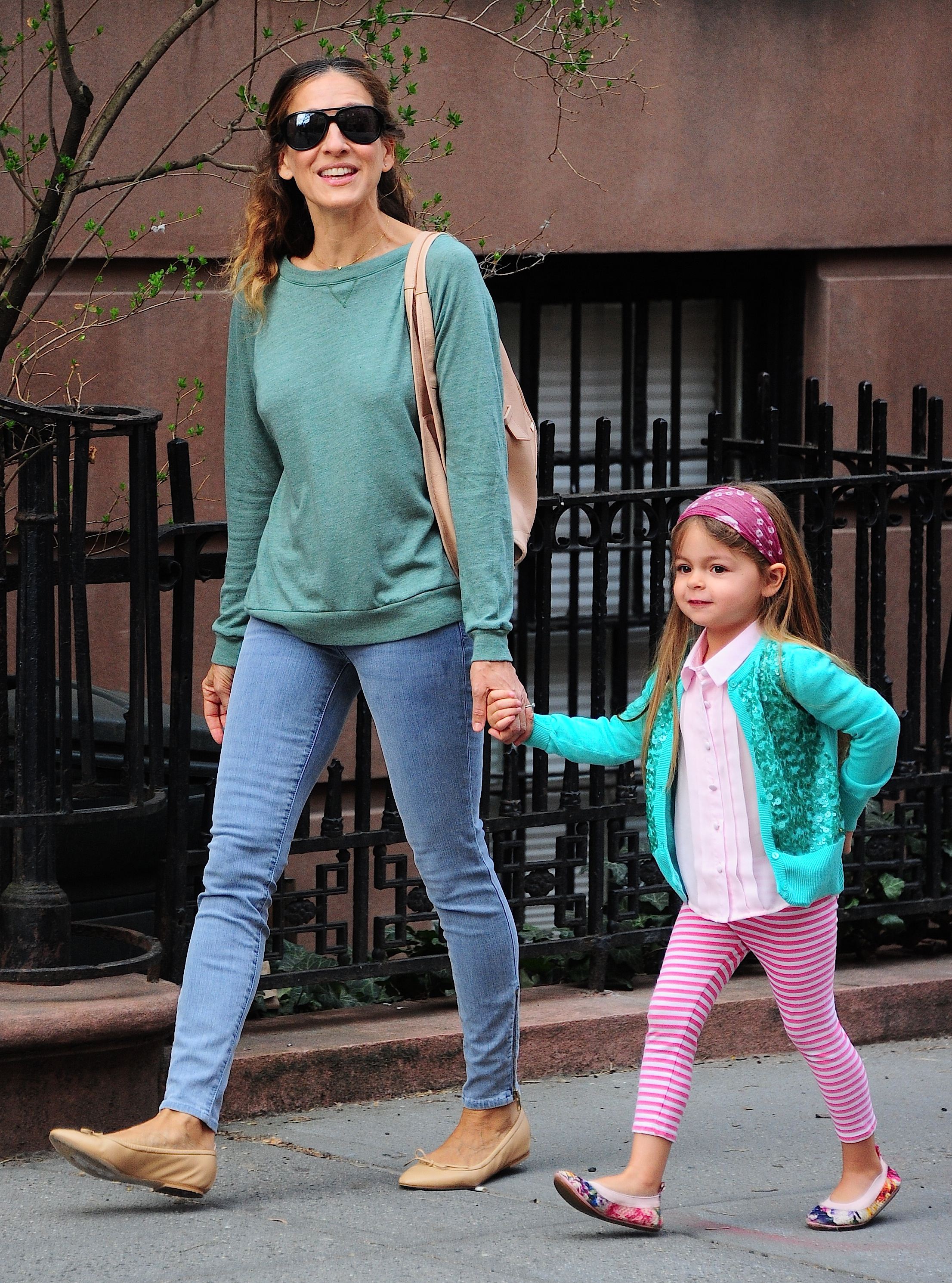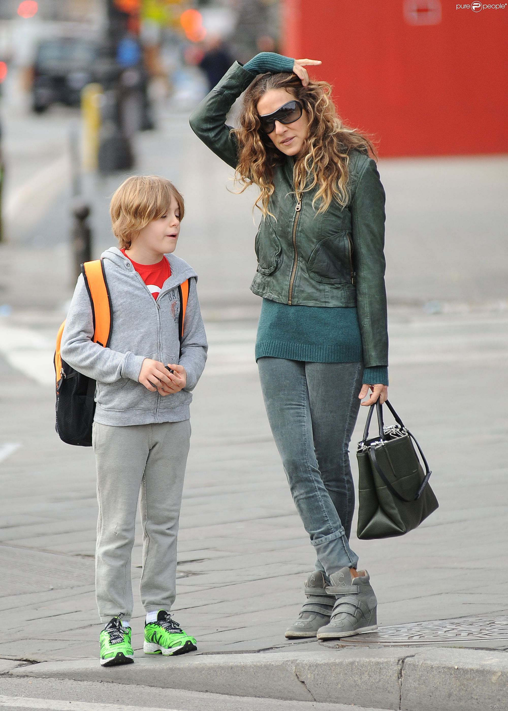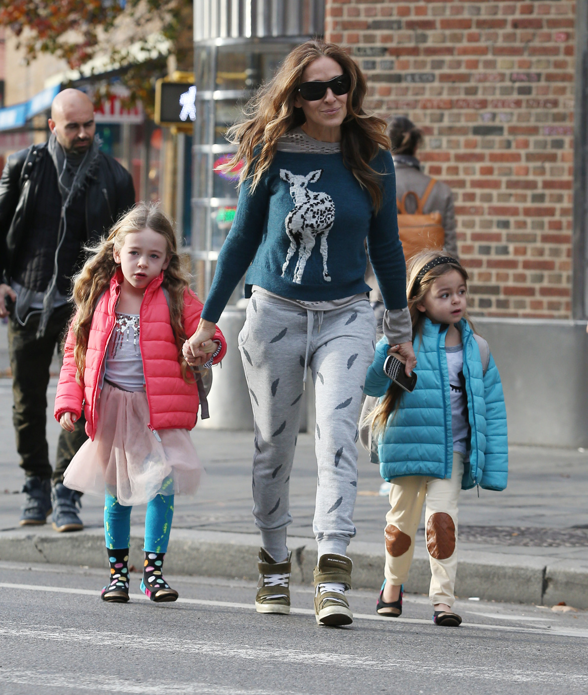 Taking her kids to school in NYC-May 9,2014.