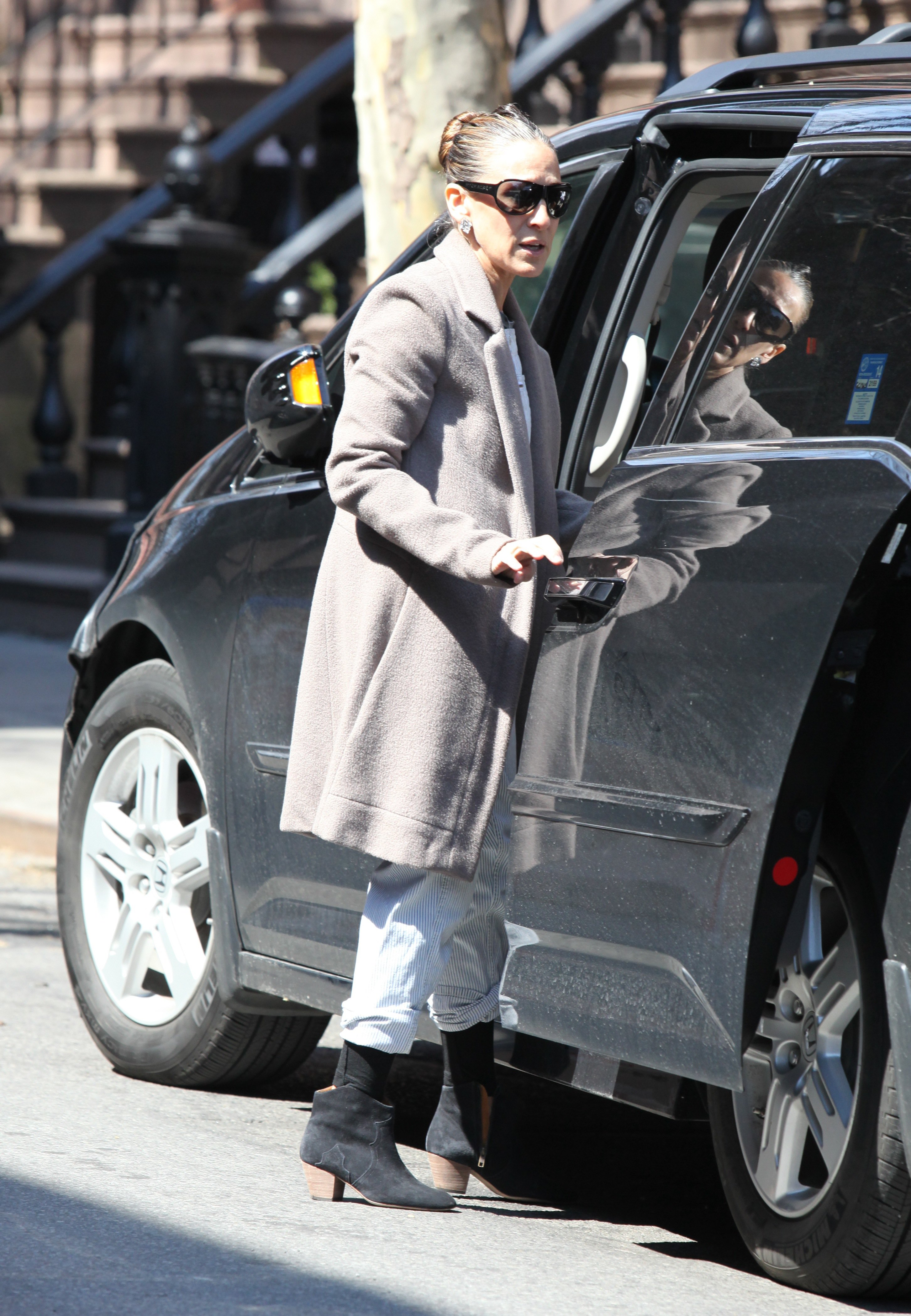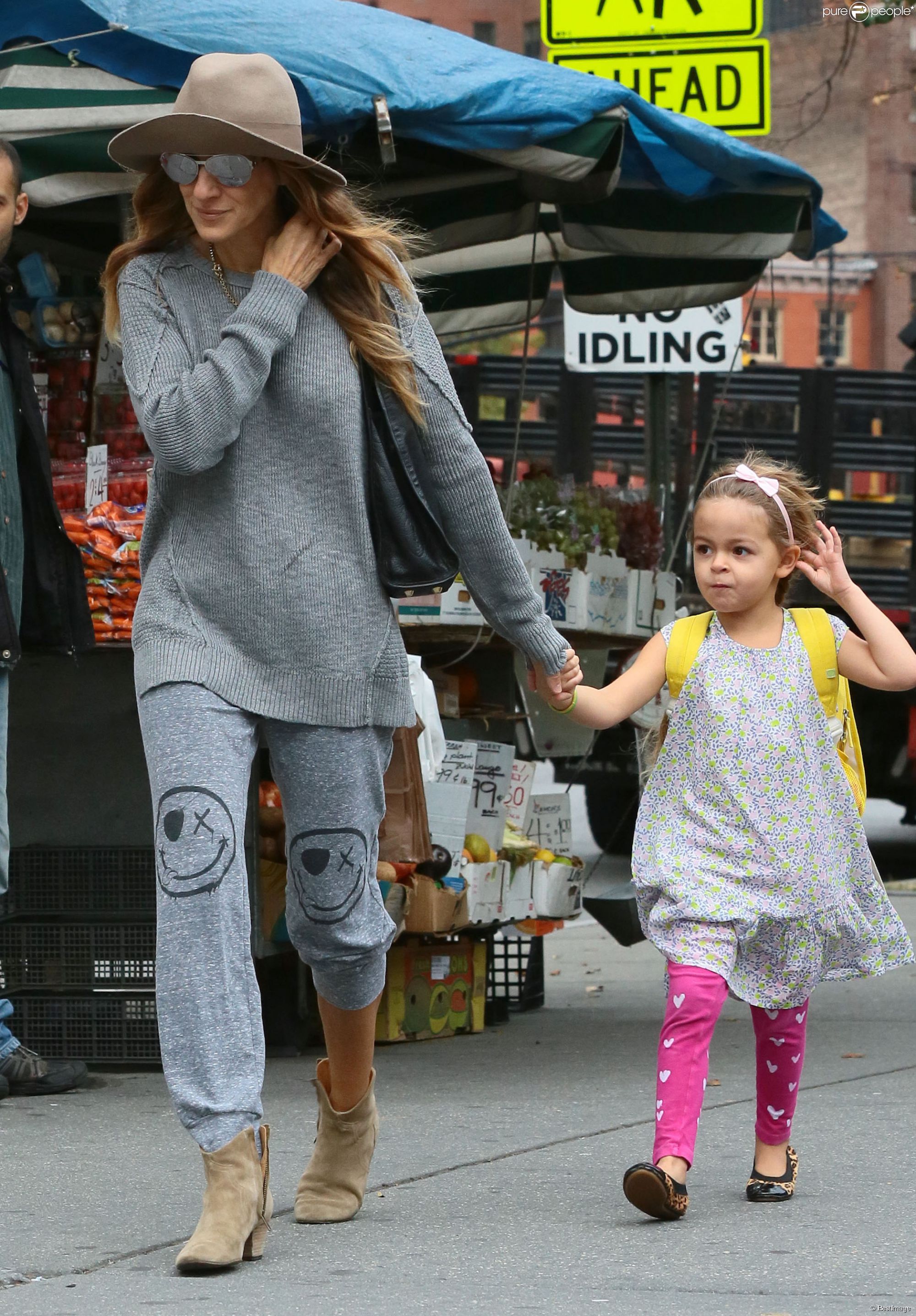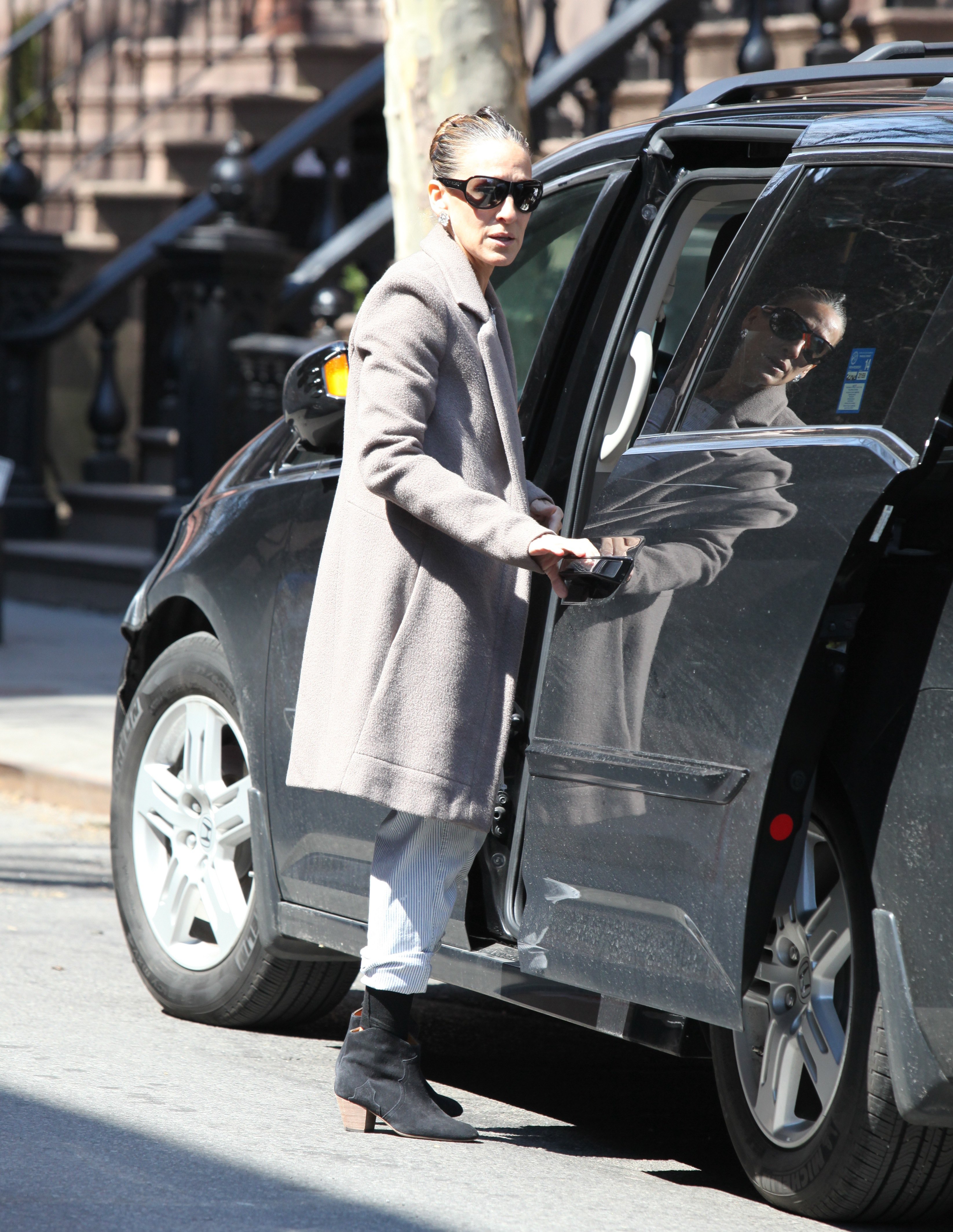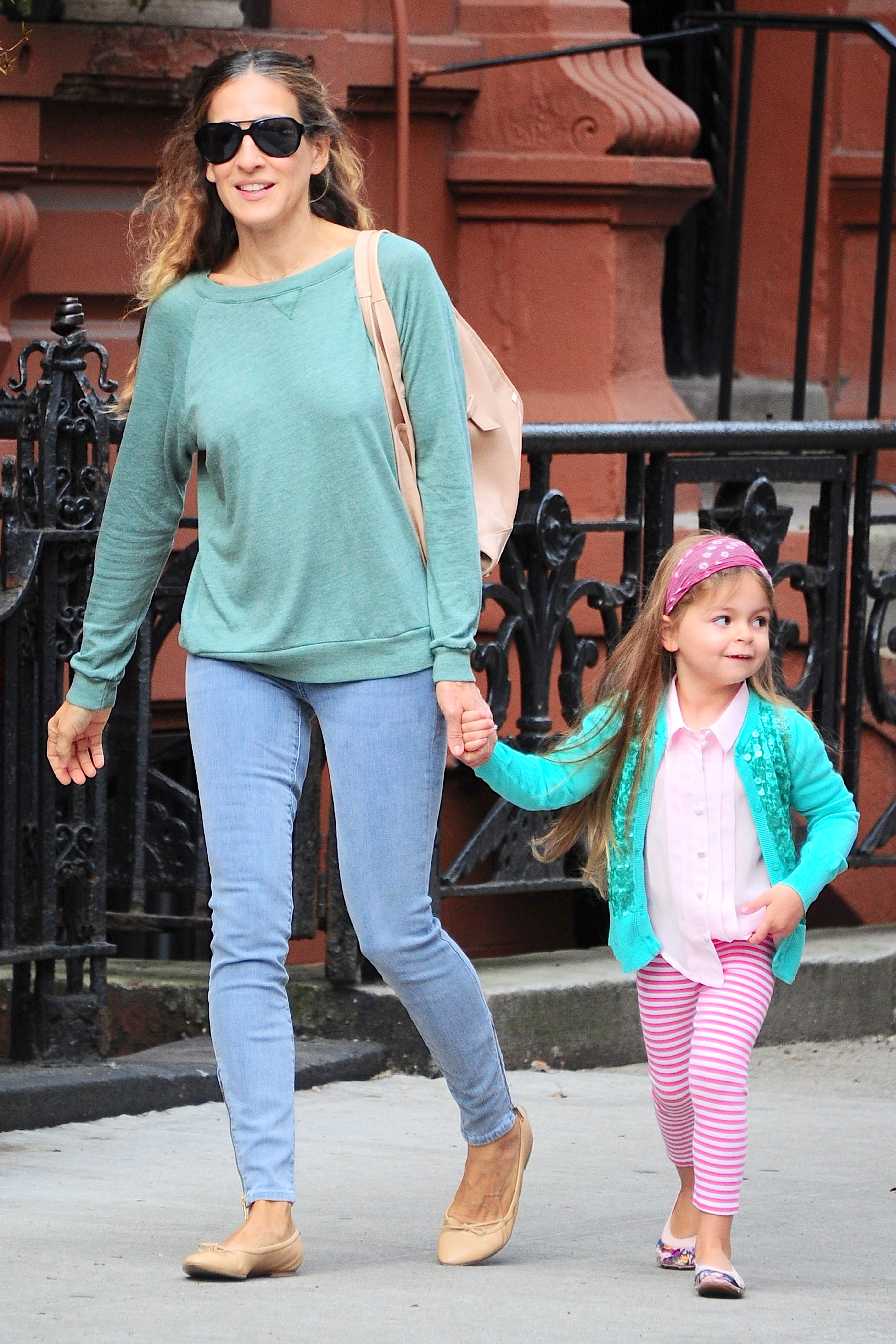Taking her kids to school in NYC-May 9,2014.