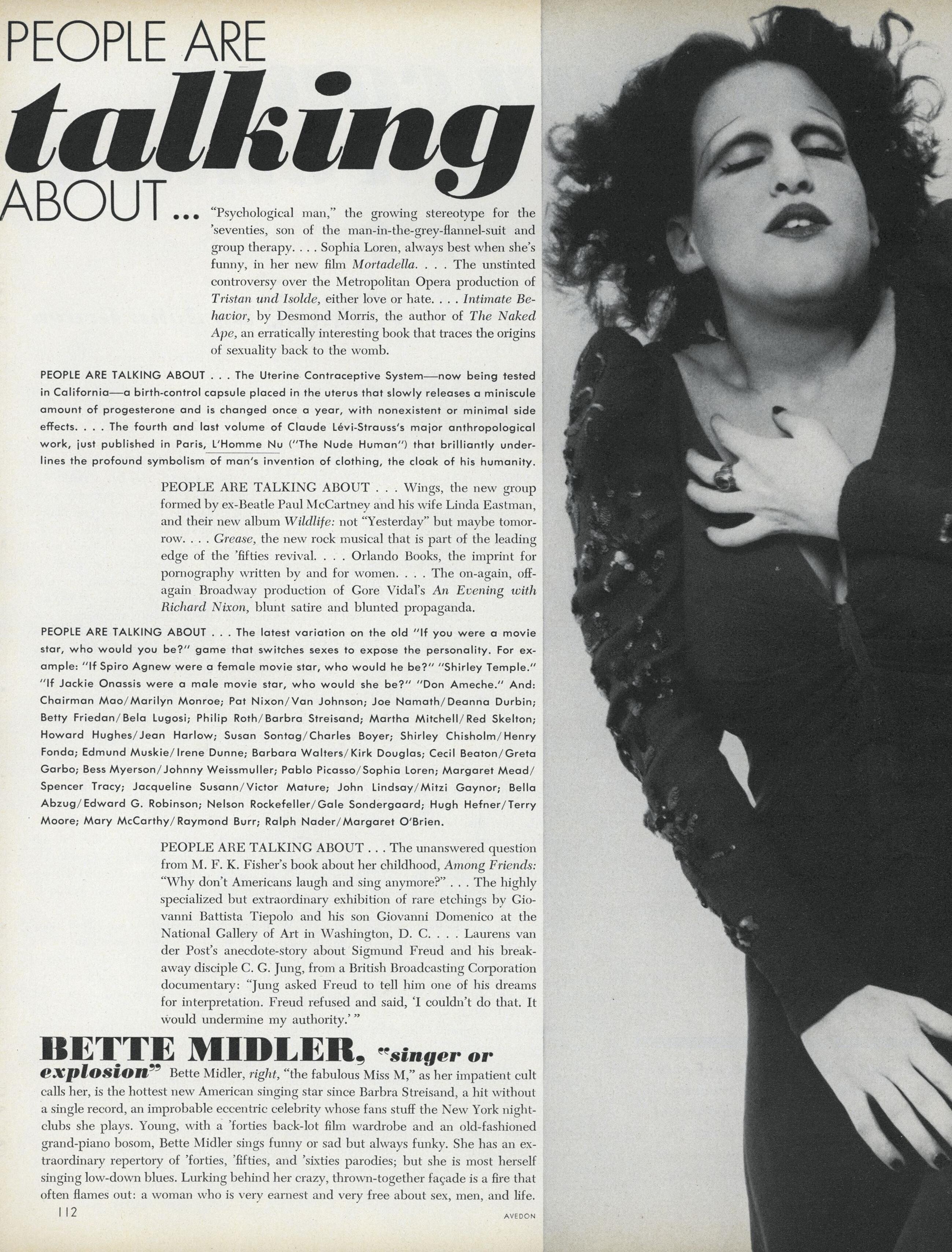 Model/Subject: Bette Midler Photographer: Richard Avedon
