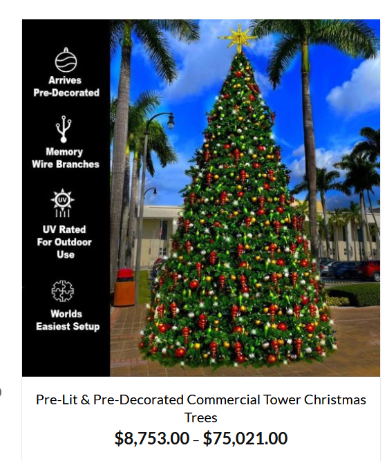 About six years ago, someone mentioned they were going for $700. It seems most people weren’t willing to spend $600 to $1,000 on a designer tree, which ultimately led the owner to pivot. After a few seasons, they transitioned to a commercial model, renting trees out to businesses and event planners instead.