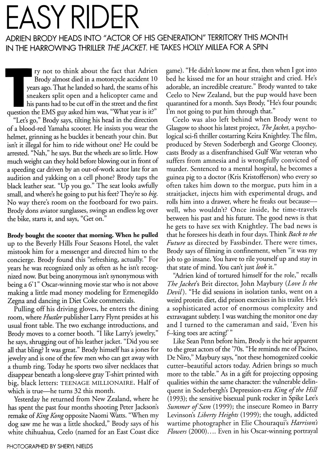 but not only is he gorgeous (i think, anyways!) but he has extrodinary talents as an actor. anyone who has watched his performance in The Pianist would surely have to agree! after all he took out Best Actor at the Oscars for it.