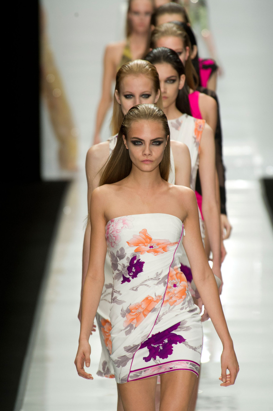 Cara Delevingne walked 37 shows for the recently completed Spring Summer 2013 season including Carolina Herrera, DKNY, Jason Wu, Marc Jacobs, Burberry Prorsum, Thakoon, Mary Katrantzou, Giles, Dolce & Gabbana, Fendi, Just Cavalli, Missoni, Anthony Vaccarello, Chanel, Louis Vuitton and Rochas. She opened four shows (Fay, Ermanno Scervinno, Matthew Williamson and DSquared2), and closed one (Anteprima). Impressive!