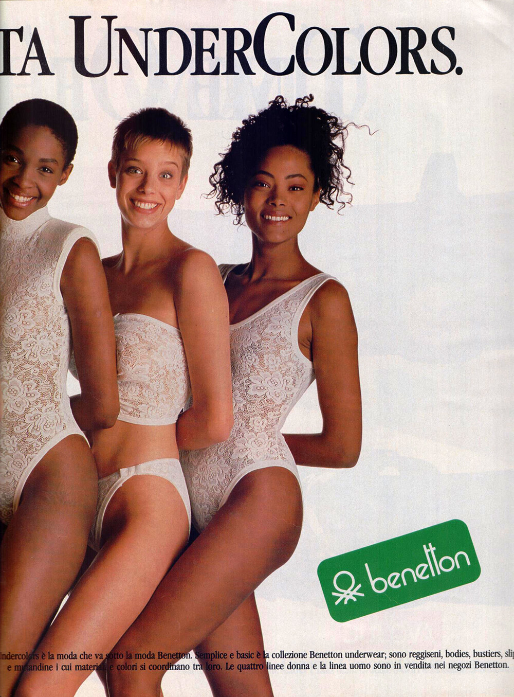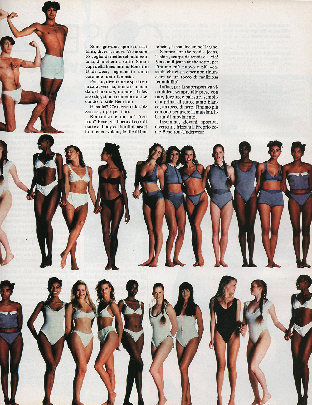 benetton advertisement - ANNA Italy 9. December 1988 #50 - also showing Jonna Hansson, Tabatha Bergin, Sophia Goth, Helena Jesus, unknown