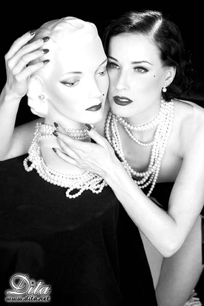 Dita and marilyn manson display their wedding in a magazine. Natalie portman is on the cover.