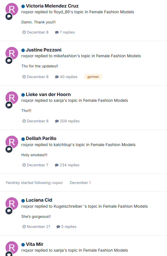 rxqxor has less than 400 messages and they are only thank yous indiscriminately and without caring much about who they are about (many famous people totally unknown to me for example).