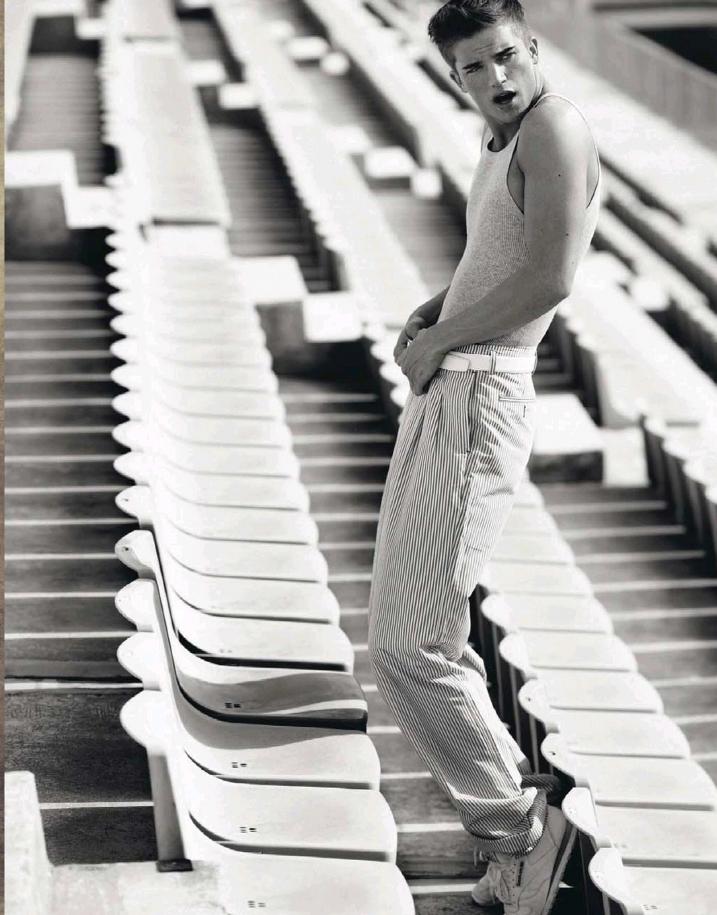 It’s not that much of a joke. He says that he boned up on Ben Stiller’s picture about a brainless model when he landed his first big job just a few months after getting started – opening for a Calvin Klein fashion show. “I was shaking like a leaf all over. I could hardly breathe from beginning to end on the runway because of my nerves.” The echo of his existence reaches us through parties and fashion events. Does he consider himself frivolous? “What does ‘frivolous’ mean? That you’re a cool dude, an extrovert? If that’s what you mean, then yeah. I’m a happy person, I like to kid around, have a good time. I’m very sarcastic, when I make a joke I do it very seriously and people don’t get it. So you explain it to them and then they feel stupid because they didn’t get it” [he laughs].
