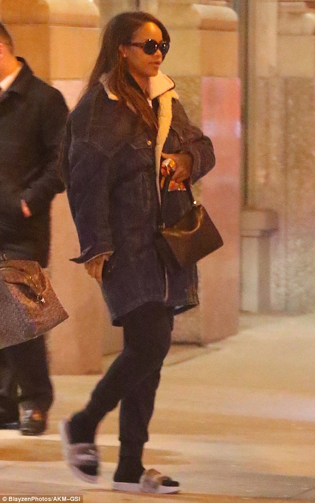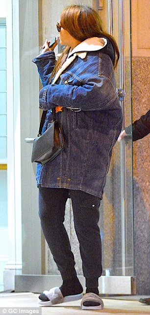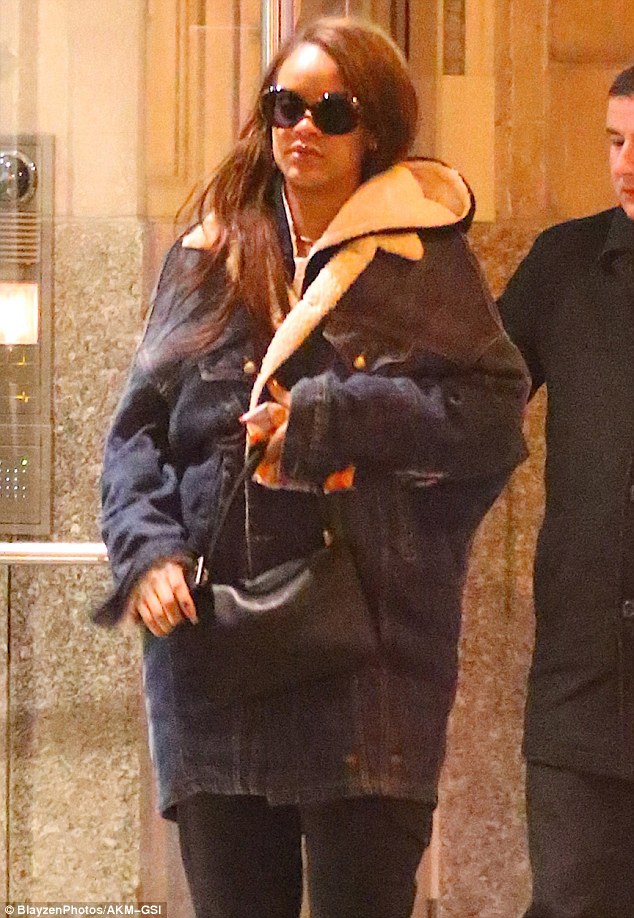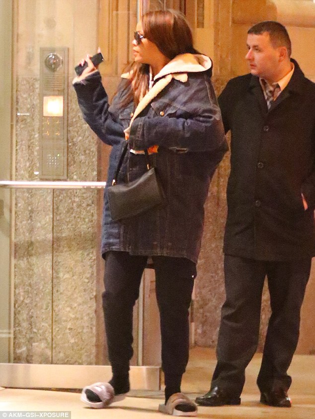 leaving the Crosby Hotel on Monday evening (February 27) in New York City.