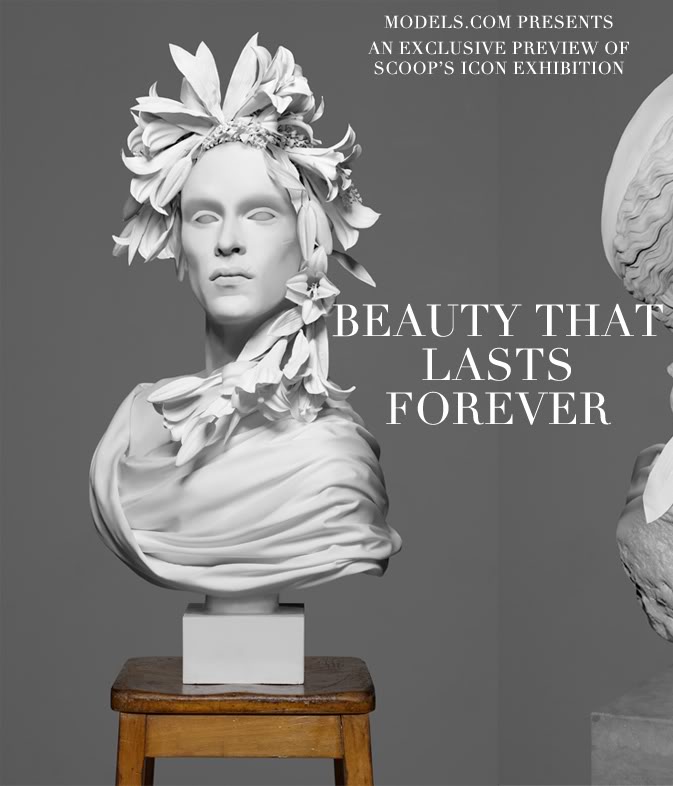 The result of an unusual art project and collaboration to be launched in February during Danish Fashion Week at gallery DASK, ICON is the work of SCOOP MODELS and two graphic designers Dennis Lynge and Michael Nygaard. Nine models from SCOOP MODELS have been recreated as photos of classical marble statues.