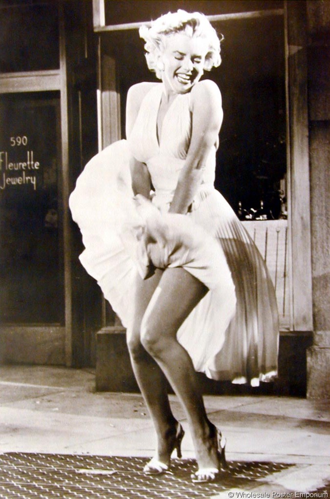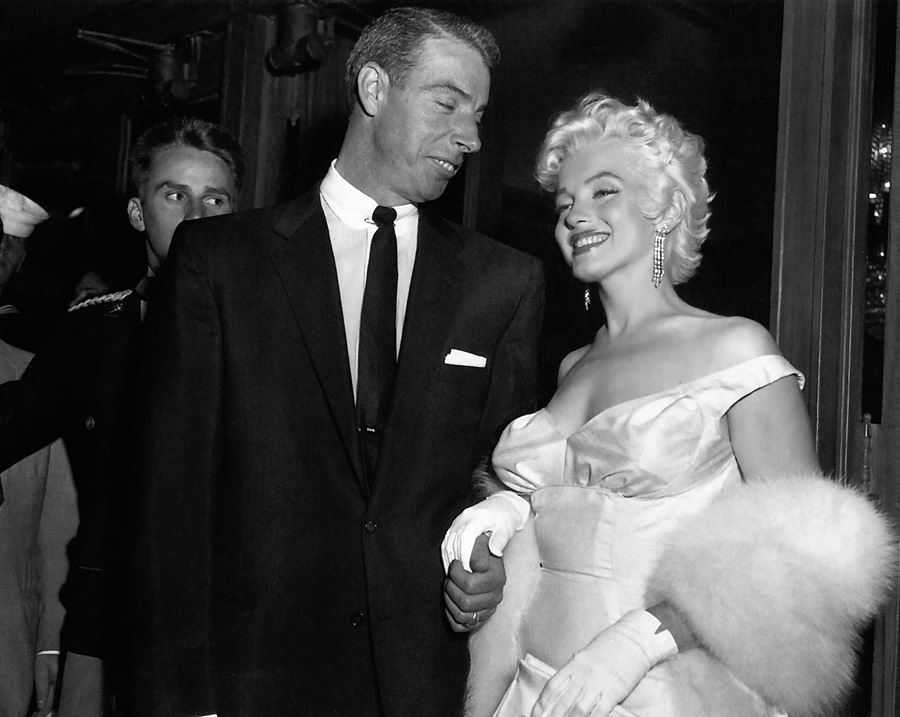 The next year she appeared in GENTLEMEN PREFER BLONDES as Lorelei Lee. This was also the year when she began dating baseball great, Joe DiMaggio. Later, she appeared with Betty Grable, Lauren Bacall, and Rory Calhoun in HOW TO MARRY A MILLIONAIRE. Although her co-stars got rave reviews, it was the sight of Marilyn who excited the audience, particularly if they were men. On January 14, 1954, Marilyn married Joe DiMaggio, then proceeded to the film THERE'S NO BUSINESS LIKE SHOW BUSINESS. By 1954, Marilyn announced her divorce from DiMaggio. The union only lasted eight months. In 1955, she appeared in THE SEVEN YEAR ITCH which showed one of the film's most memorable scenes where she stands over a subway grating causing her dress to blow up all around her. Her work was slowing down due to problems with being tardy or not showing up at all. In BUS STOP (1956), she finally proved to the critics that she could play a dramatic role. It was also the year she married the brilliant playwright, Arthur Miller. (They divorced in 1960).