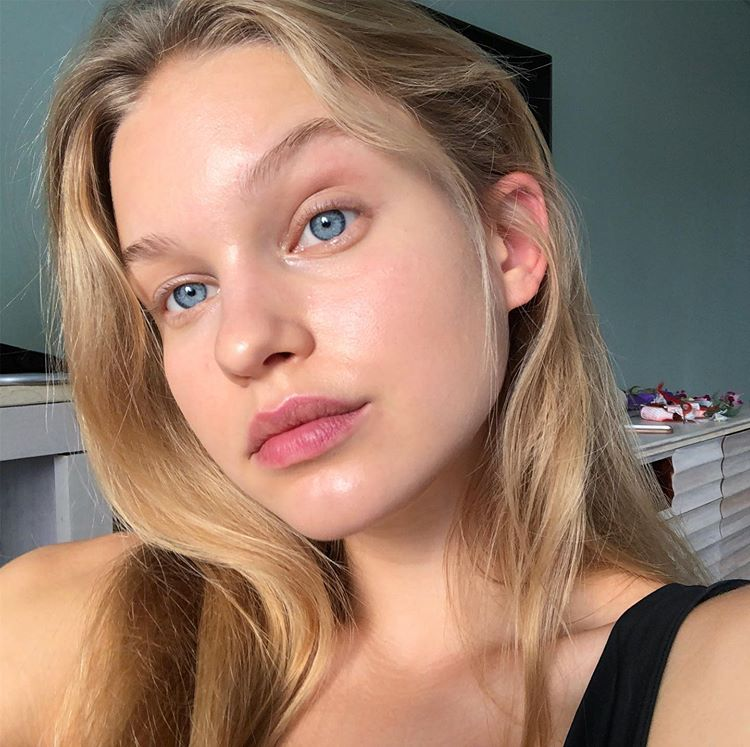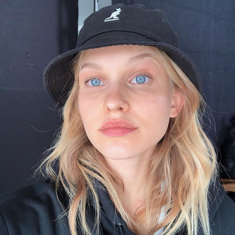 the first time i saw her, i fell in love with her, but after seeing her photos on my timeline a few times i realized she's another blonde girl with blue eyes, nothing special. she's pretty, but boring. if you go to vs website, you'll find plenty of photos of her with the same expression