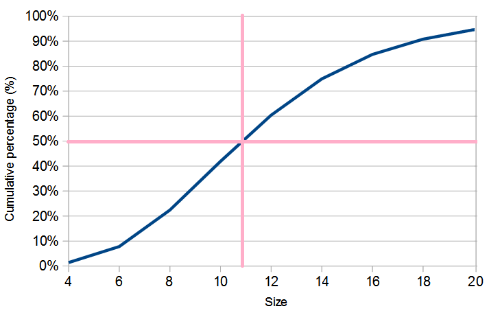 The median size is actually EU 41 (= US 11). Cosmo's article points out that 6- is not representative (true: it's <10% of the population), but they advocate that 18-20+ is "the norm" (but.. it's also <10% of the population).