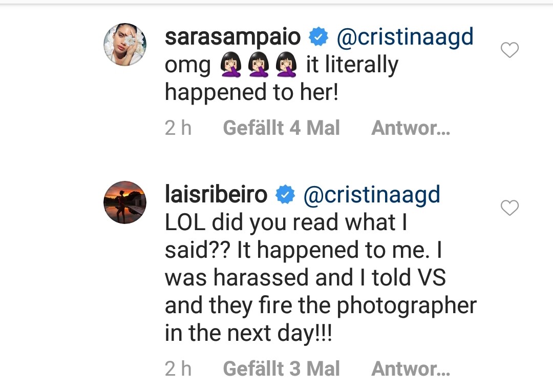 So Lais was harassed by a photographer and he was fired the next day. Is it David Bellemere? I thought he had a problem with Taylor Hill??