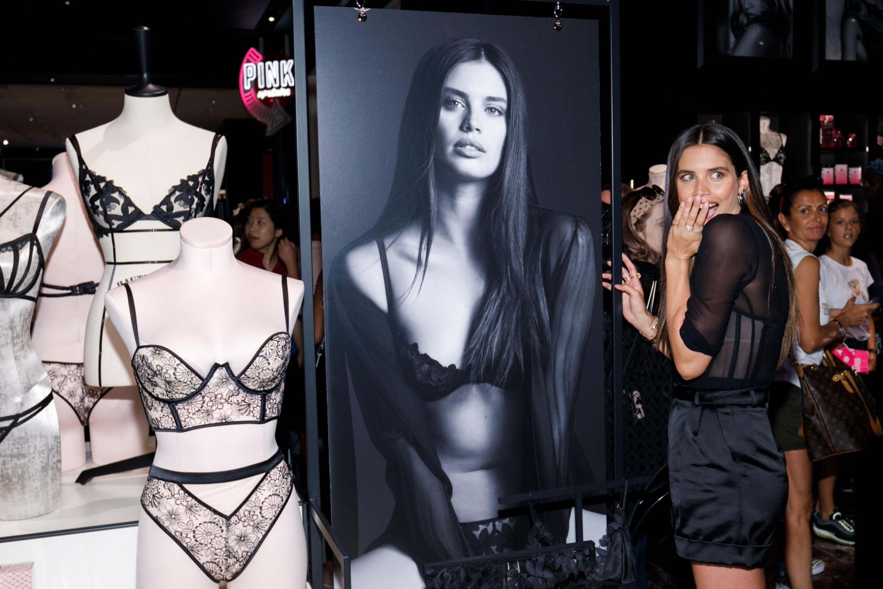 Barbara's outfit is too cutesy for the tone of the event to me- clashes with them trying to promote this as the return of super sensual, sexy lingerie collections.