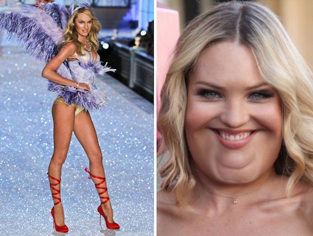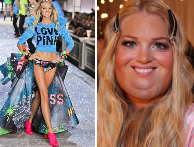 Fat Lindsay is flawless.^Oh my!How would Victoria's Secret Angels shape up if they gained 100 pounds each? Models are given the FatBooth treatment.^SPOT ON! (Although to me they all look a little like they came from that Garbage Pail Kids movie.Ale fat man who occasionally wears woman's clothing? o.o (not hating, love ale!))