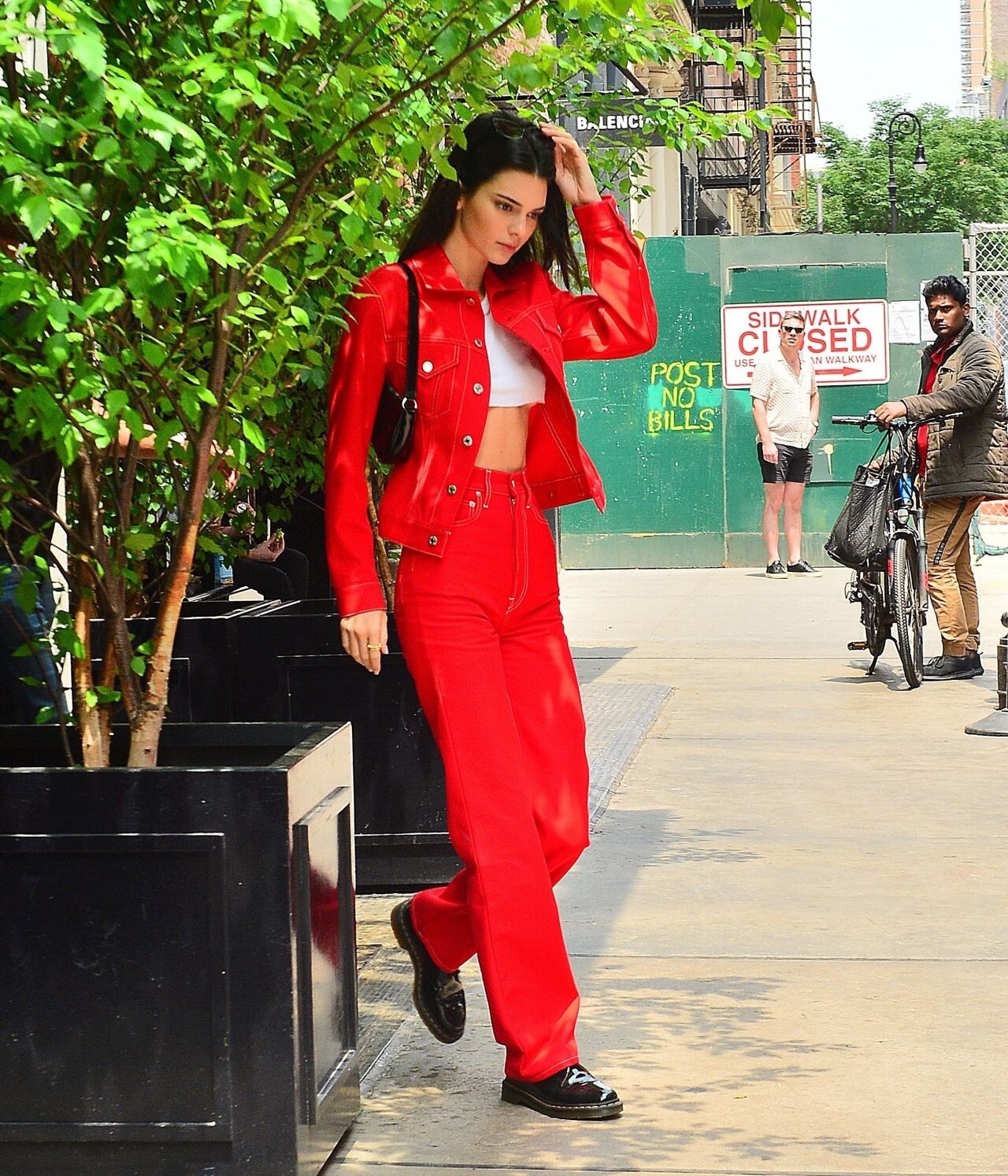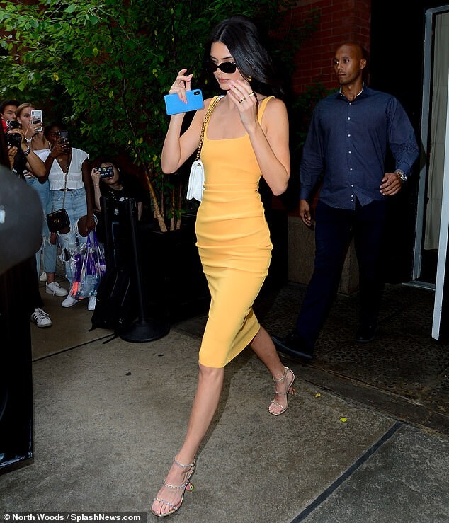 stepped out in New York City to make her way to Alexander Wang's 2020 collection show in Rockefeller Center.