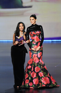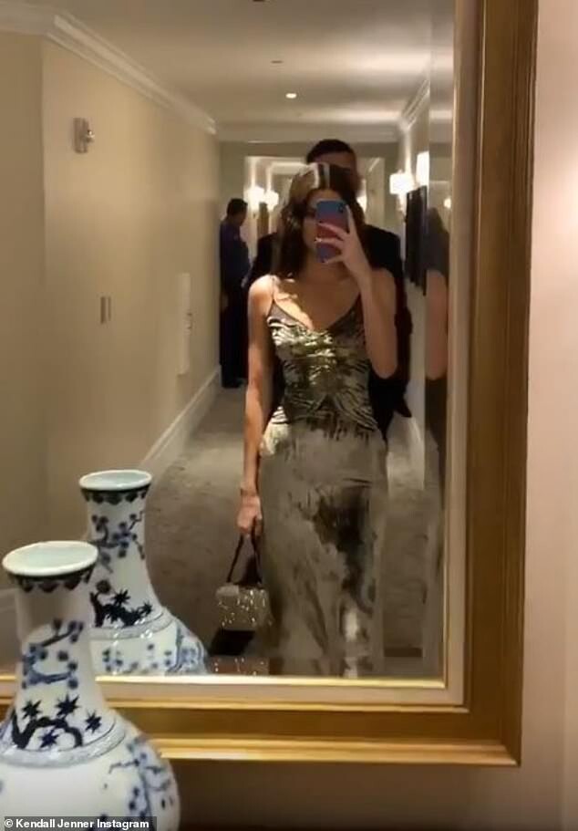 Kendall Jenner poses in a skintight velvet gown with pal Fai Khadra at Justin and Hailey Bieber's second wedding in South Carolina: 'We don't date he's just my date'