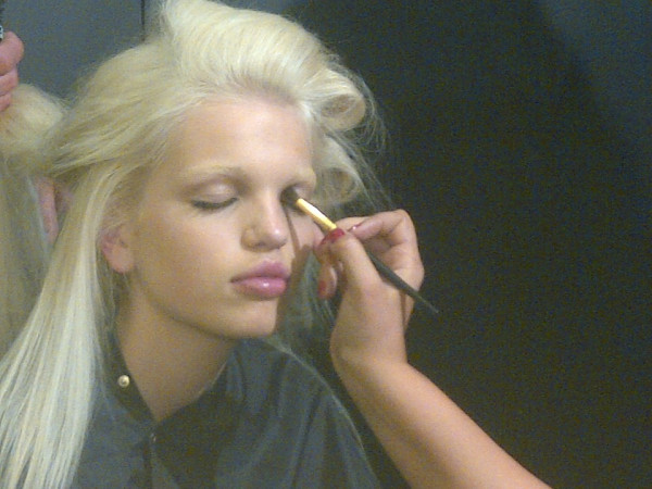Daphne in the makeup chair @ dolce gabbana 's D&G backstage!