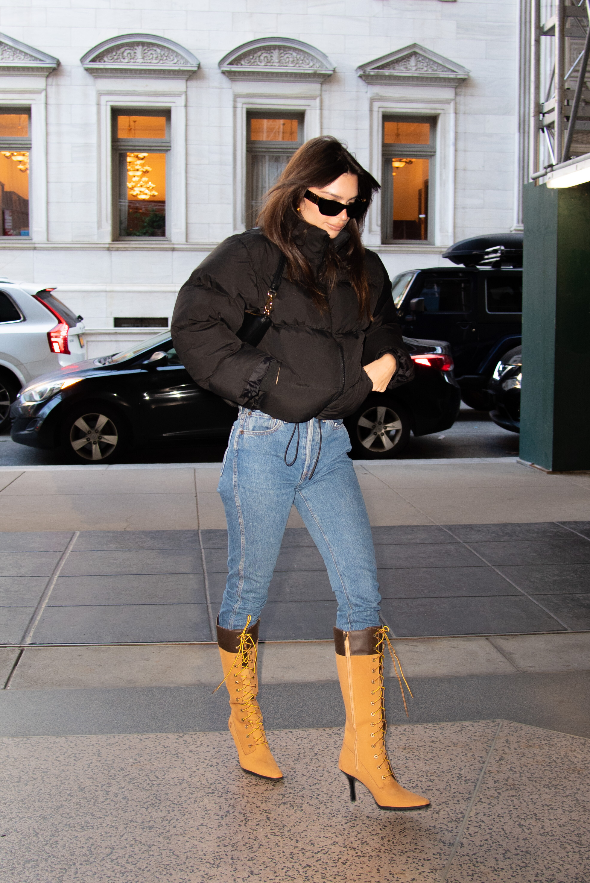 Emily Ratajkowski in an open cropped blazer 11/30/2022