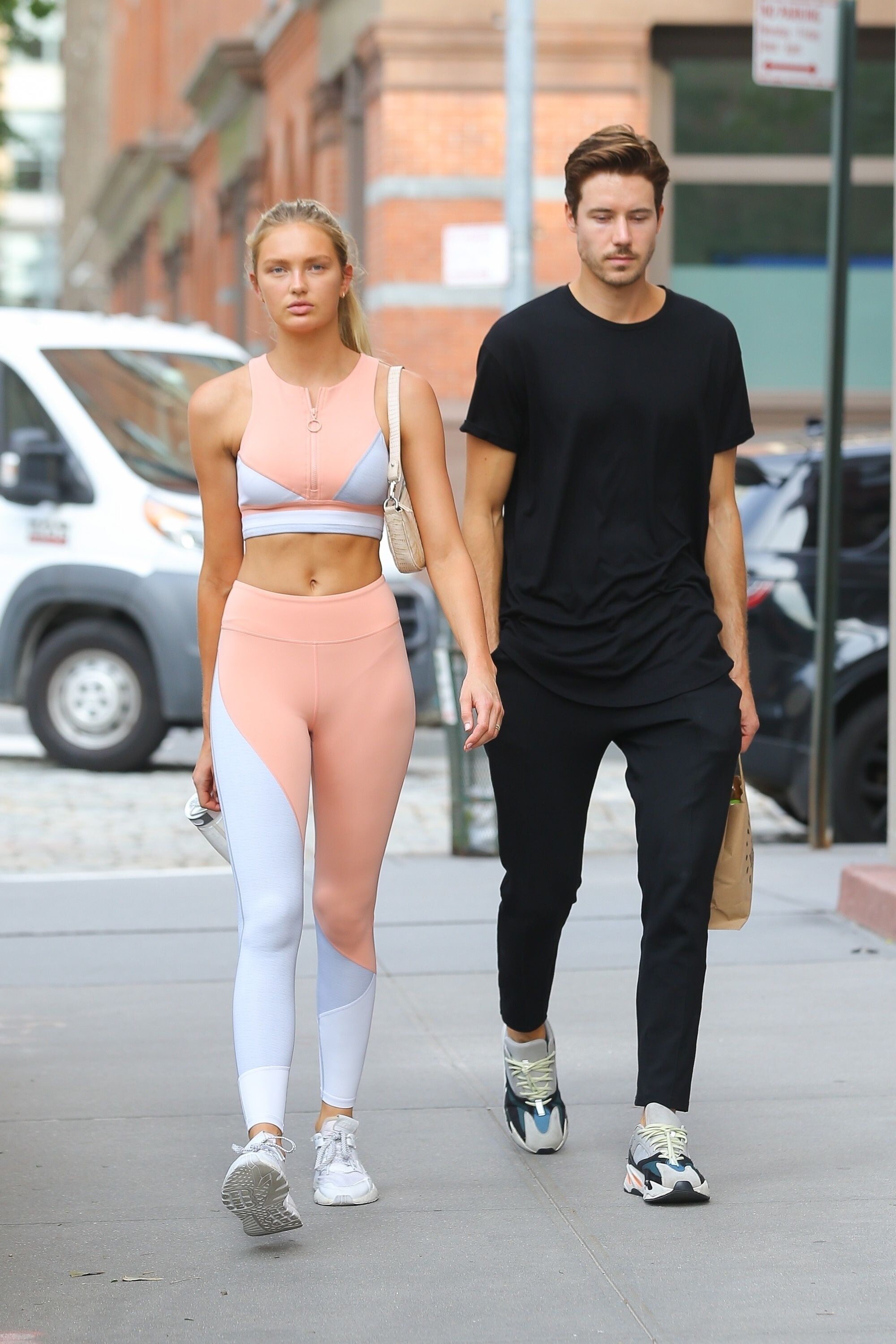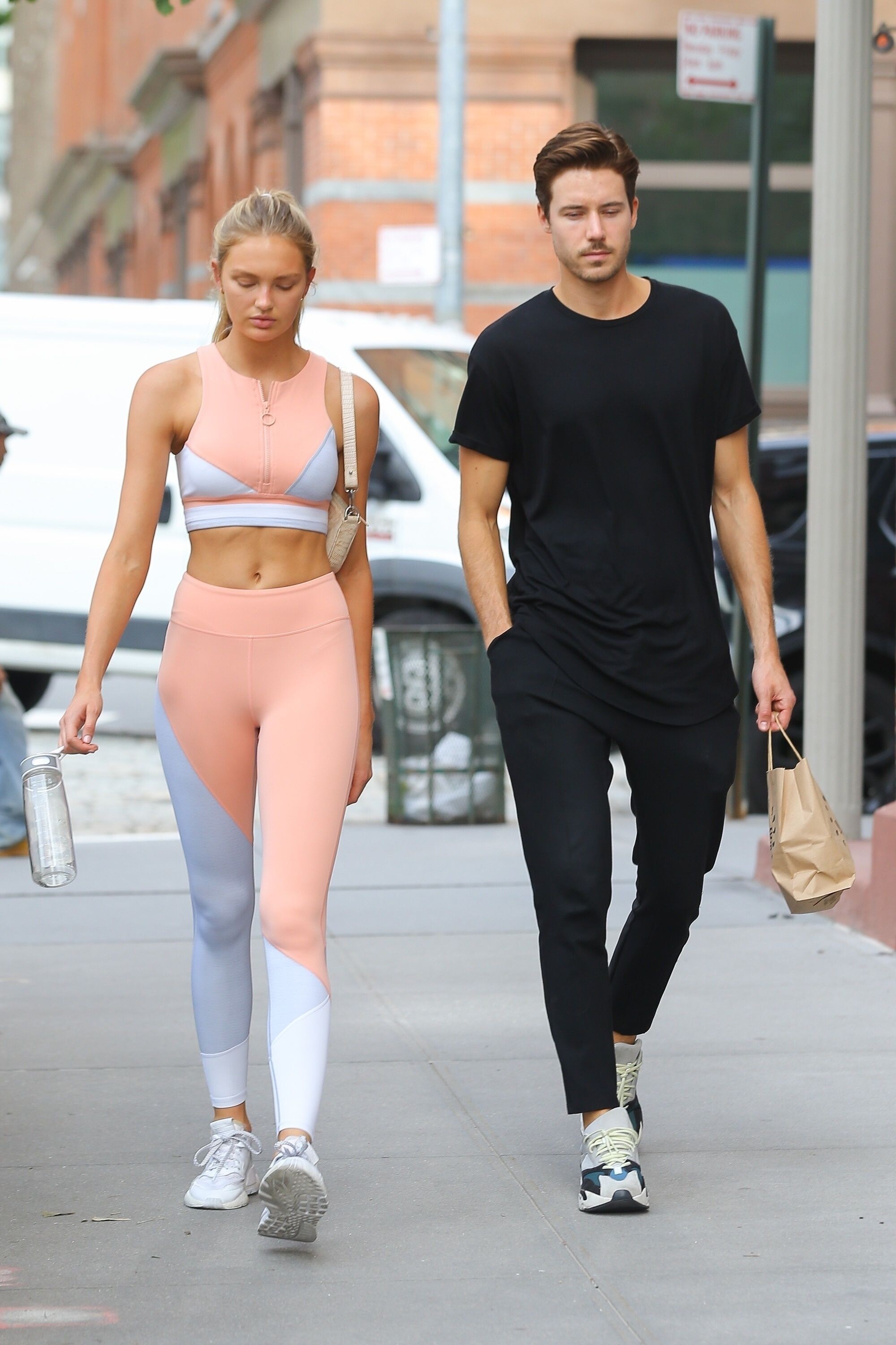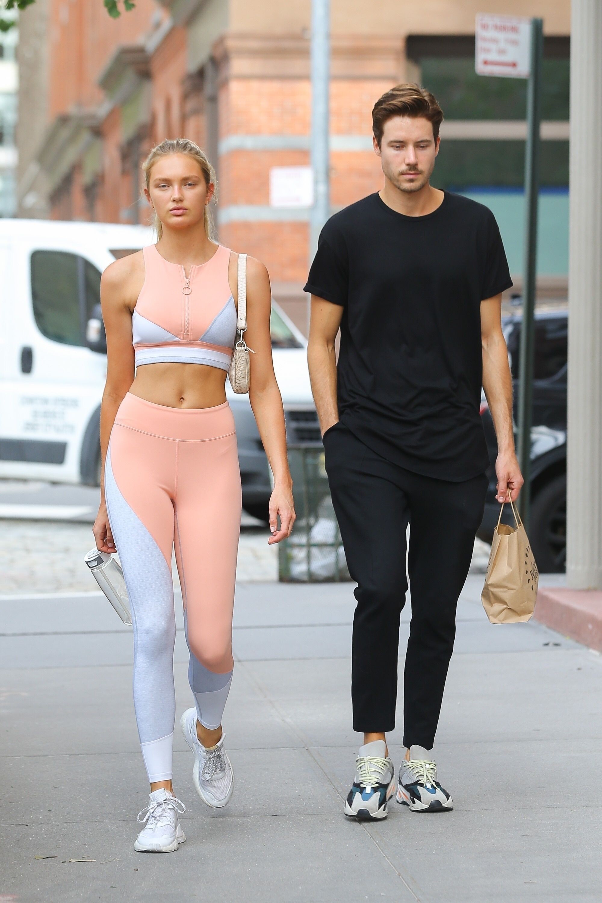 I don't wear light colors, but she looks great in it! How do these super models not get sweat stains on light clothes after a hardcore workout? If I wore those to workout in, you would see sweat stains all over me LOL. romee just looks clean and composed all the time.