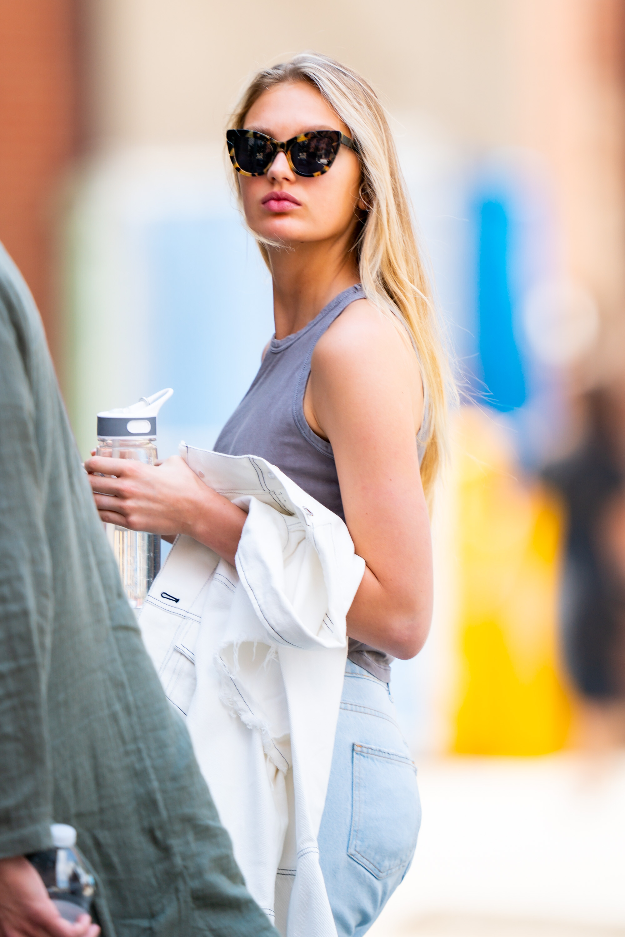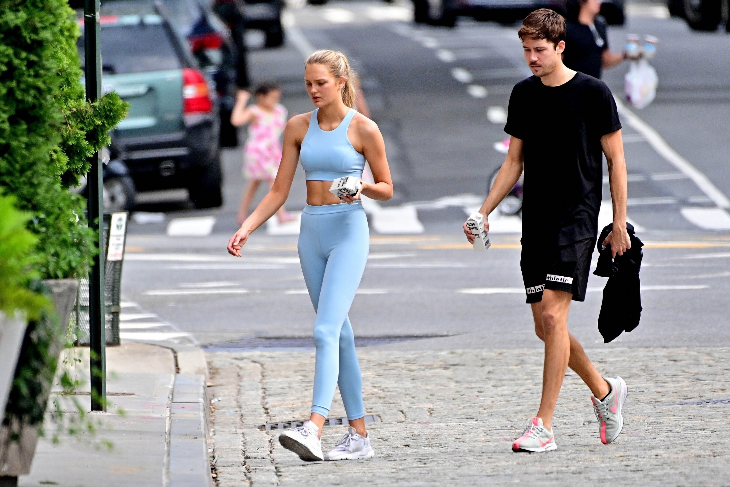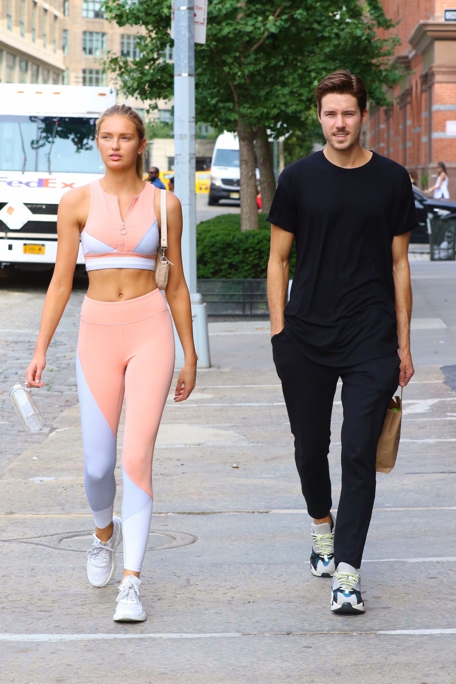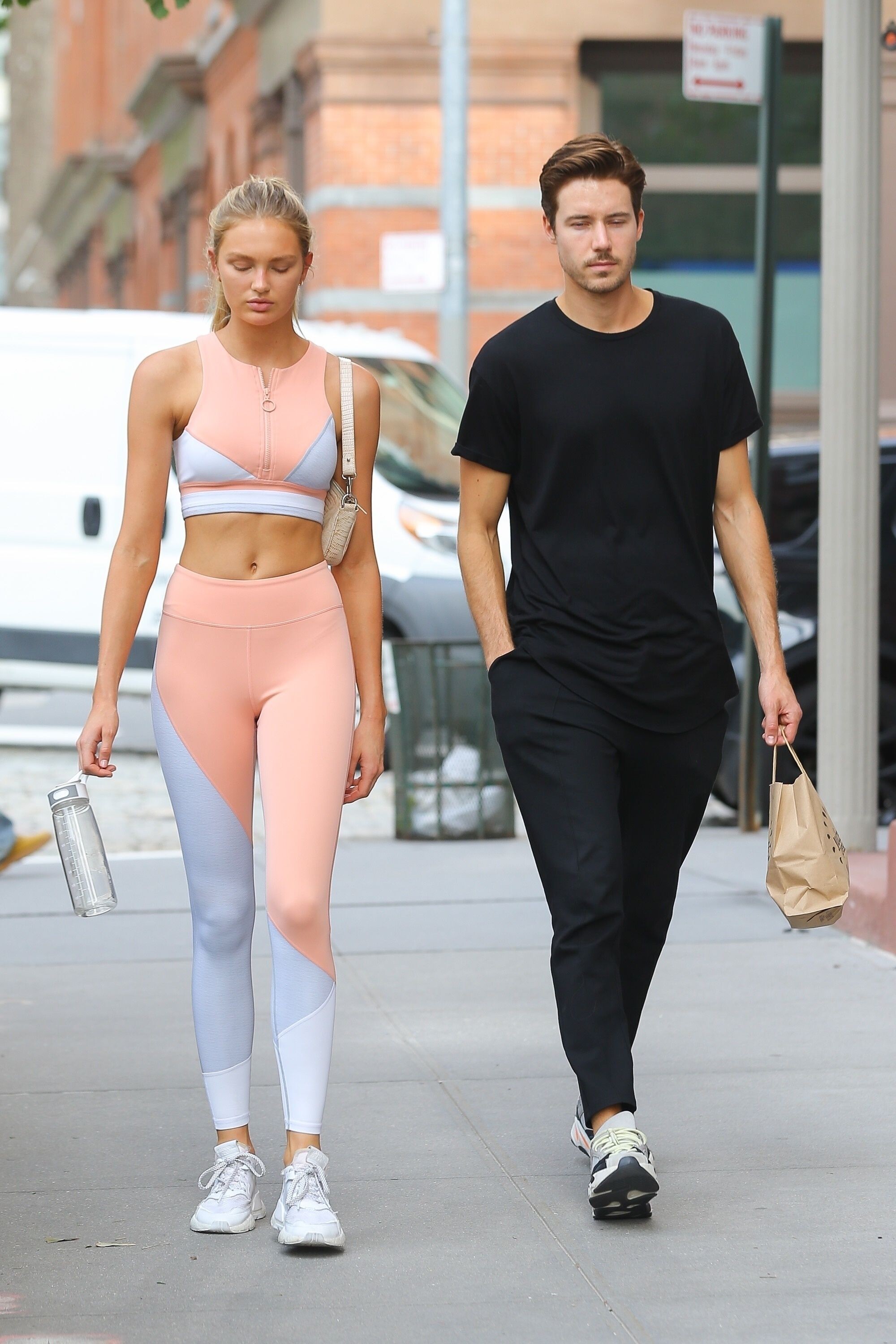 I don't wear light colors, but she looks great in it! How do these super models not get sweat stains on light clothes after a hardcore workout? If I wore those to workout in, you would see sweat stains all over me LOL. romee just looks clean and composed all the time.