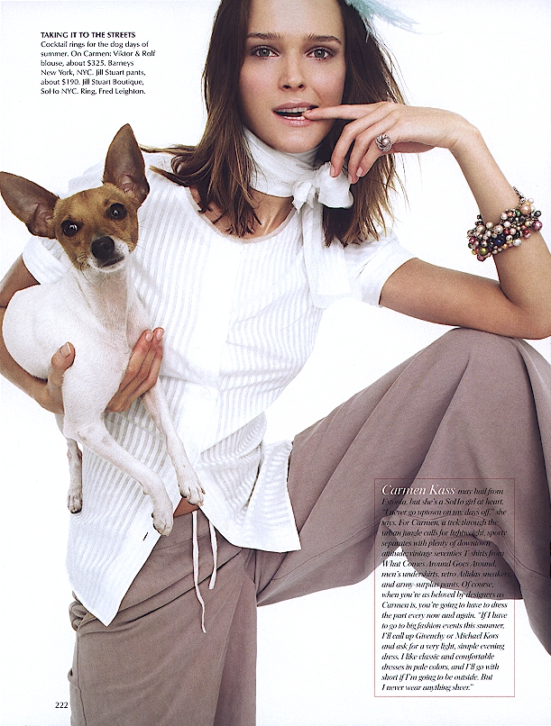 In 1999, Kass strutted down the catwalks for top designers such as Alberta Ferretti, Anna Sui, BCBG, Bill Blass, Calvin Klein, Chanel, Christian Dior, DKNY, Dolce & Gabbana, Gianfranco Ferr