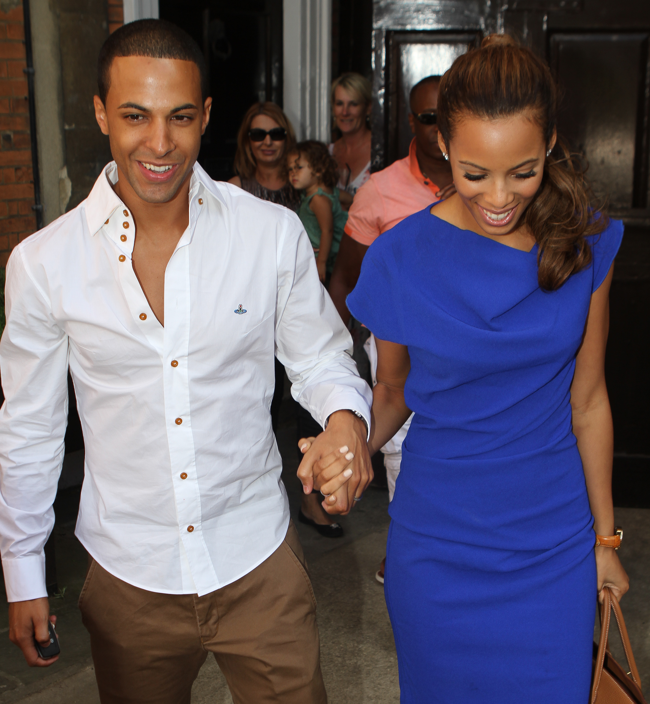 Rochelle Wiseman and husband depart from Woodstock Village Oxfordshire 28 July 2012 - tlfan