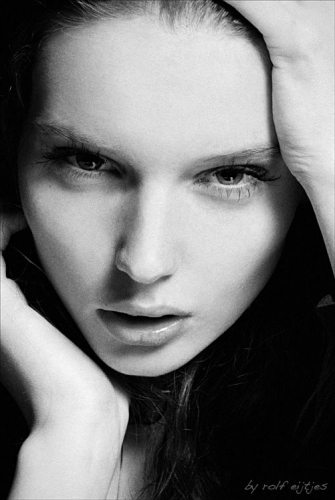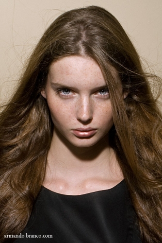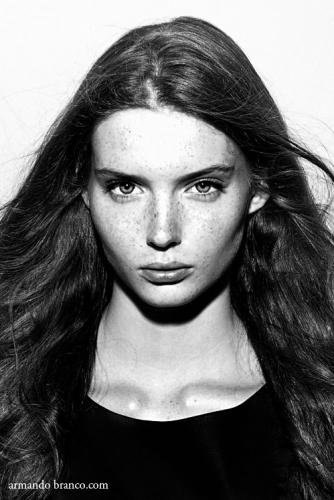 There is something in Patty, what you can't overlook. It's very special and at the same time eye-catching. Is it her strong look or is it her promising face ? Well, it's the mix from both. Patty has a face, that you won'tt see often, lovely freckles, dark brows, uncanny eyes and a gaze, which is to describe with uniqueness. She reminds us of Georgina Stojiljkovic. Back to Patty, she's Dutch, has a silhouette of 5'9 or 174m. and was discovered by our Dutch power house