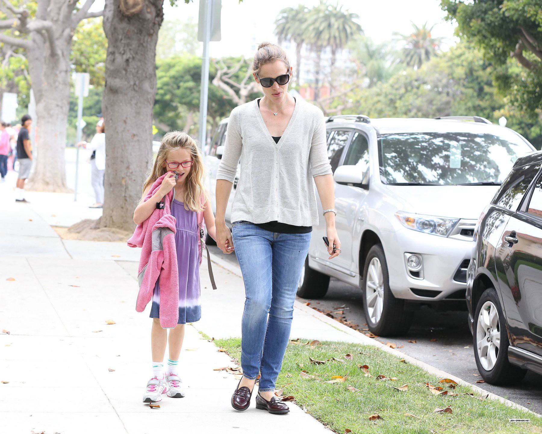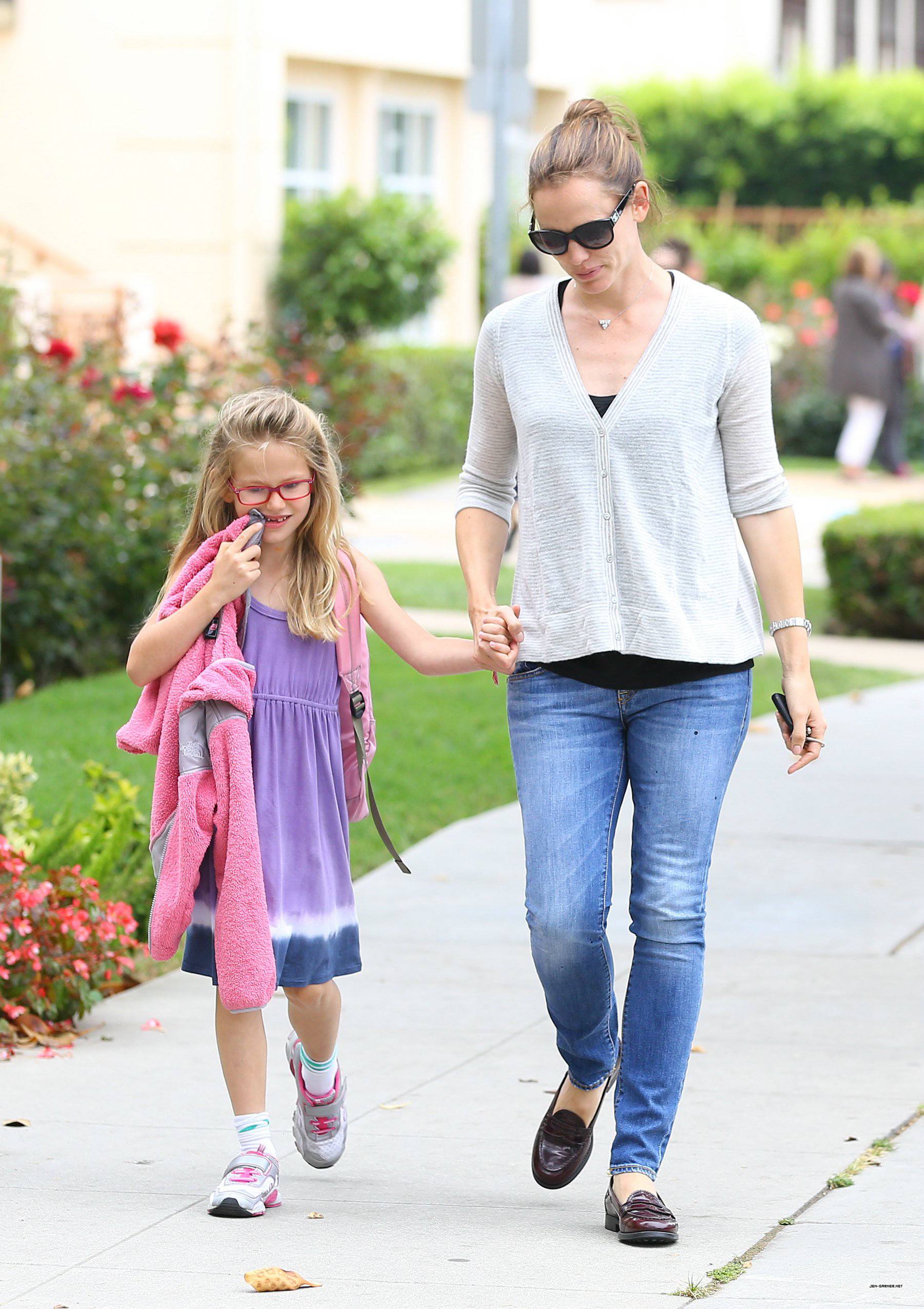 Jen picks up Violet from school in Santa Monica - June 6 2013.[jen-garner.net]