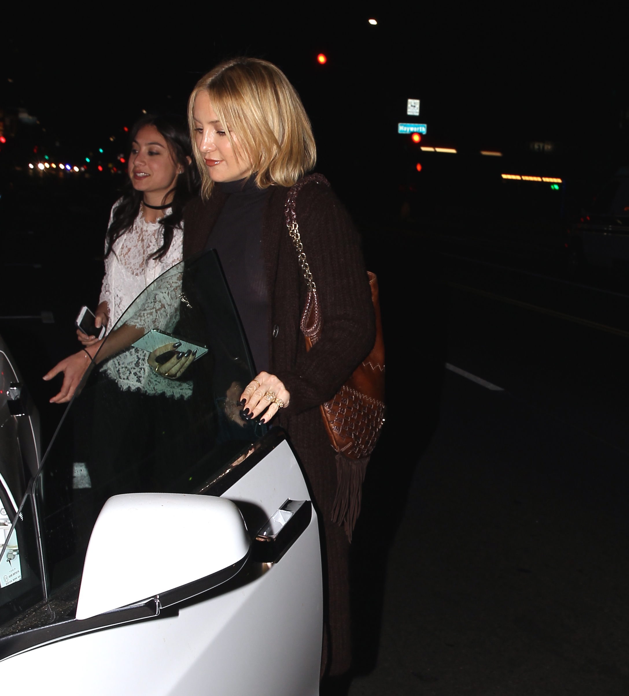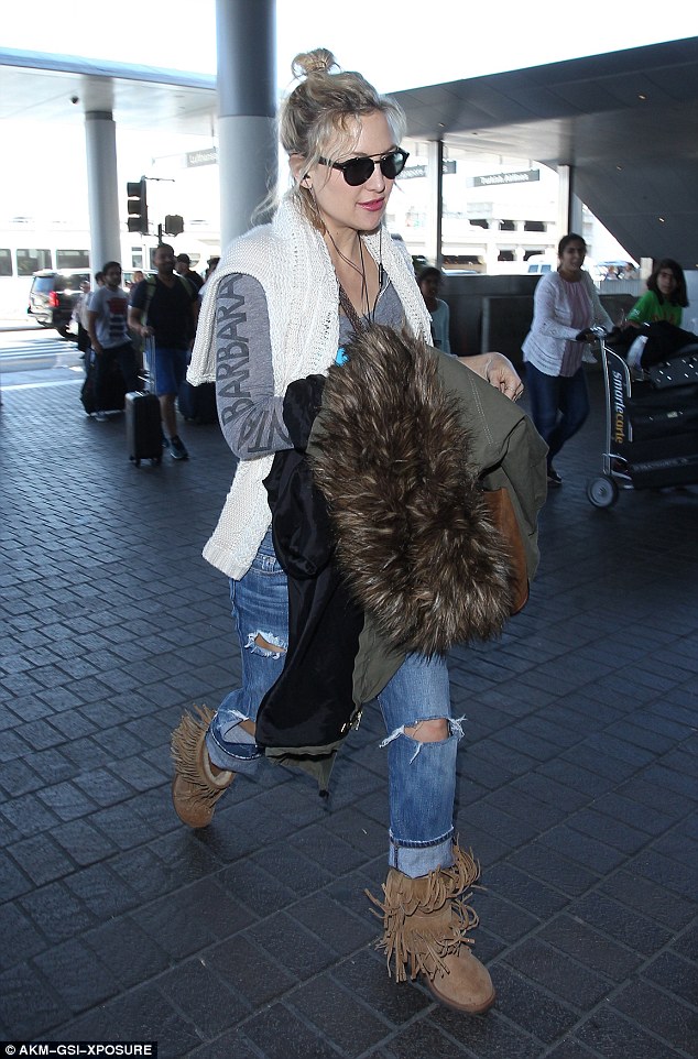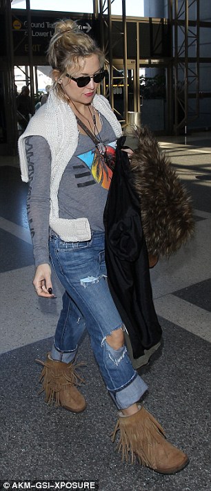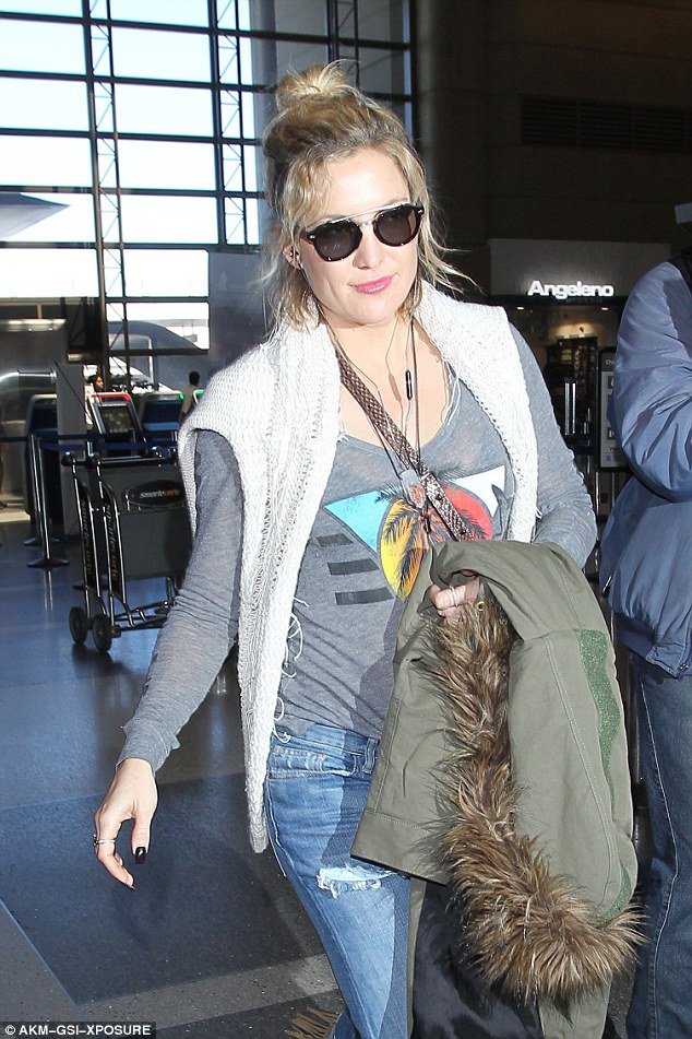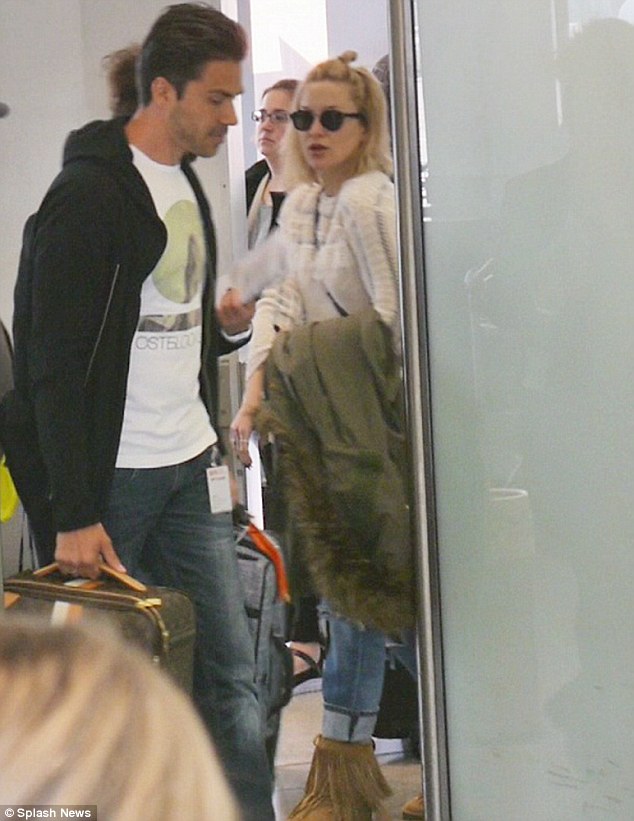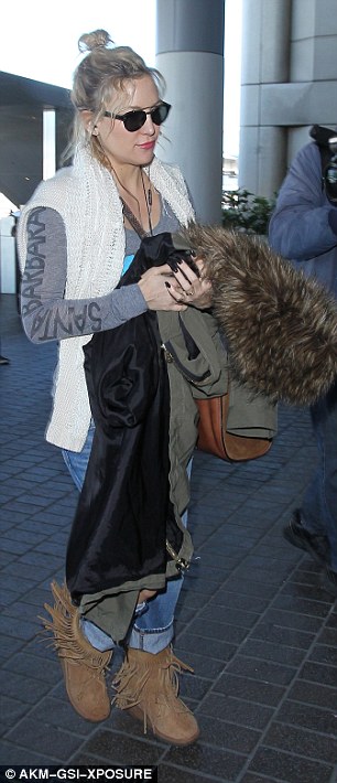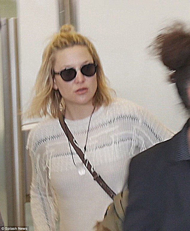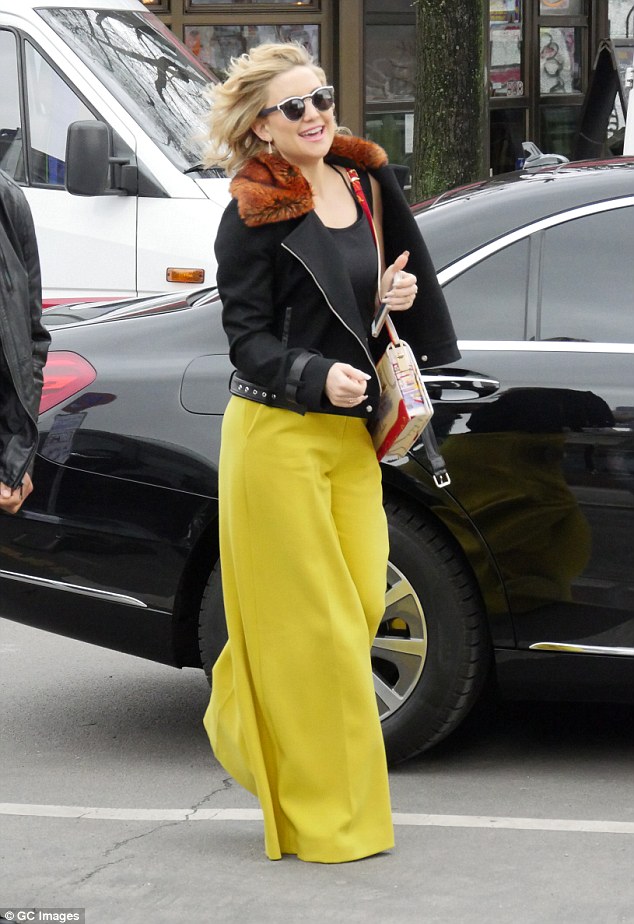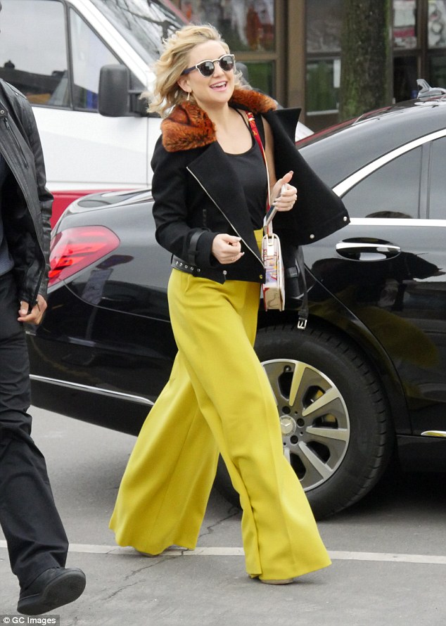 Earlier in the day, the blonde beauty had arrived in a similar pair of canary yellow flares and a black top