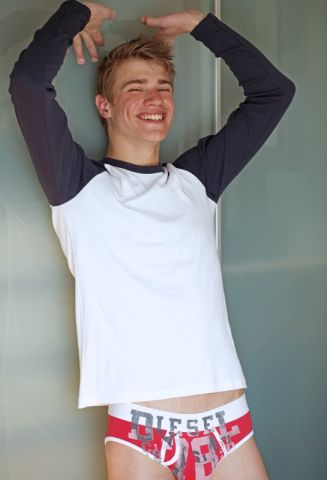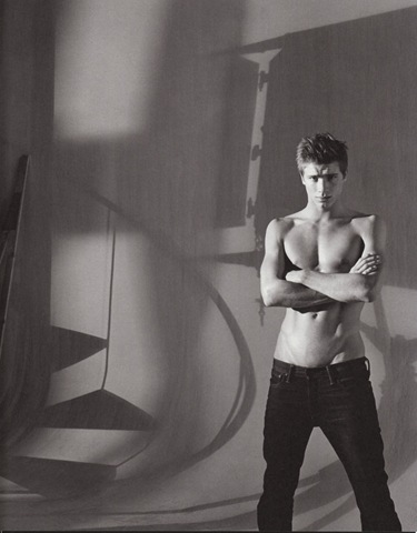 "Macho Moritz Mitterbauer has one more month of service to complete in the Austrian army, but already has some major interest from major clients. Discovered at a model contest – he didn’t win, but was signed to mother agency Next Company anyway – Moritz is placed in Milan, Paris and Barcelona, with NY and London placements pending. We love a man in uniform!"
