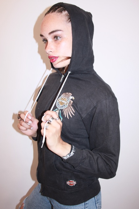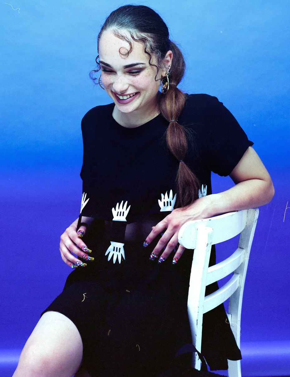 'I was scouted in Topshop when I was 15. It was pure luck - it wasn't the kind of shop I normally hung around in. I had a slightly "different" style. I was wearing baggy jeans with a big Puffa jacket and trainers. My hair was blue and I had barely-there eyebrows and a nose piercing. Being asked to be a model was the last thing on my mind.