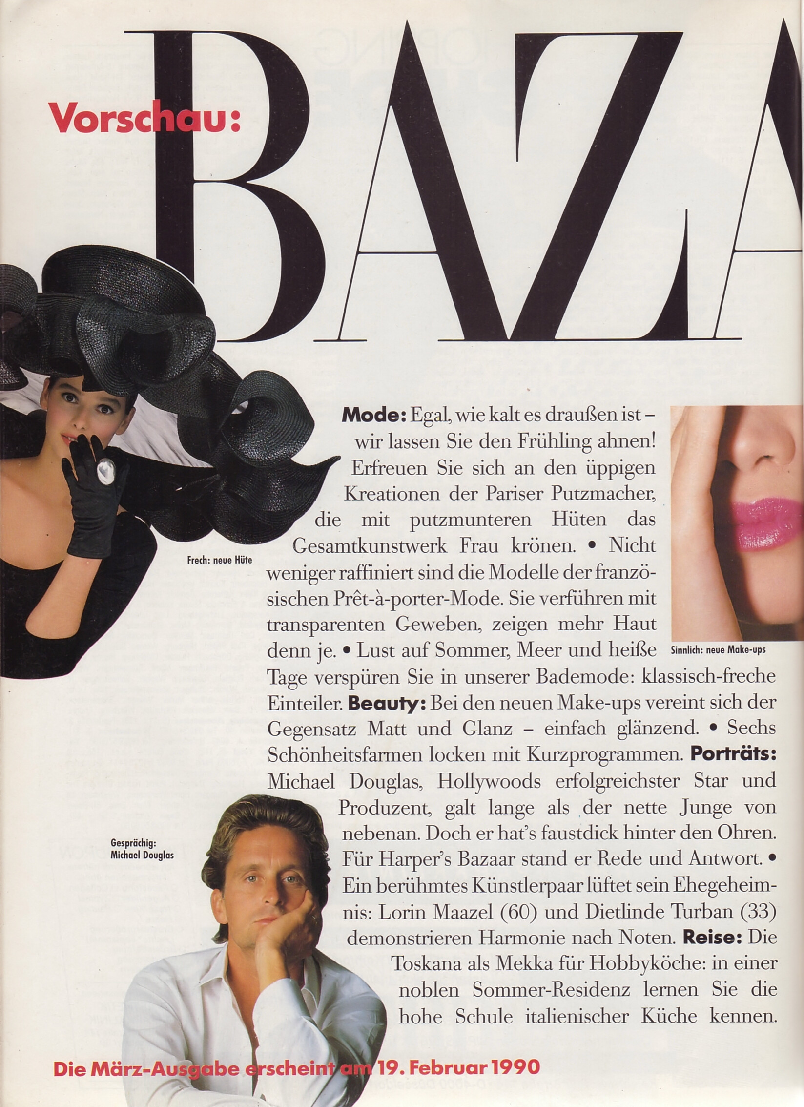 preview - Harper´s BAZAAR Germany February 1990 - also showing Michael Douglas