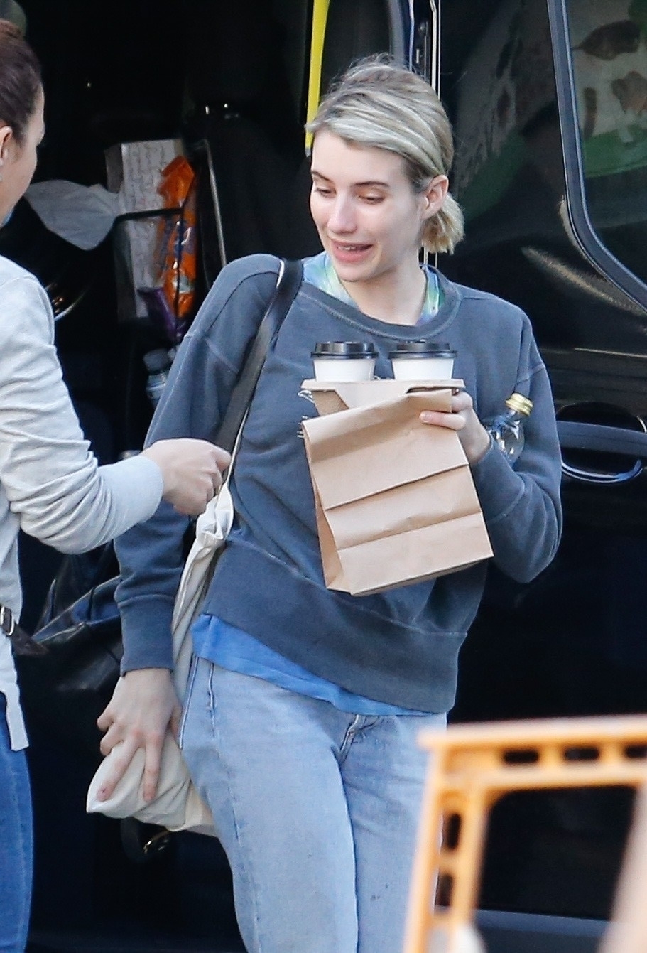 Emma Roberts grabs a bite to eat with a friend before heading to the spa in Los Angeles, CA - June 16, 2018