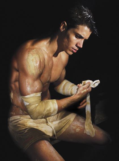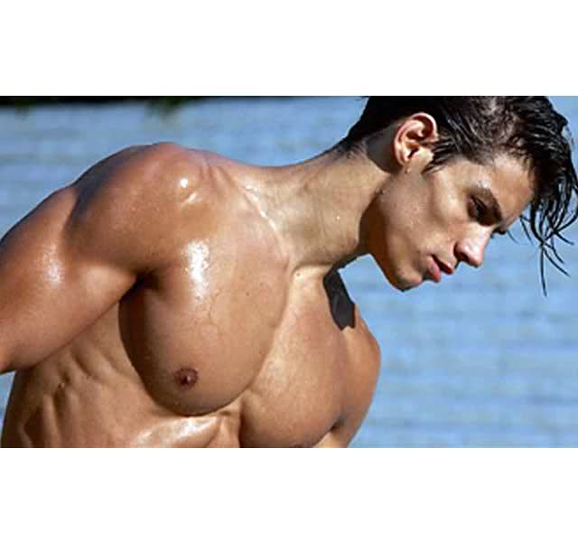 First! Damn, this guy is hot! Break out the whipped cream and chocolate syrup, because I'd have a meal off his abs!