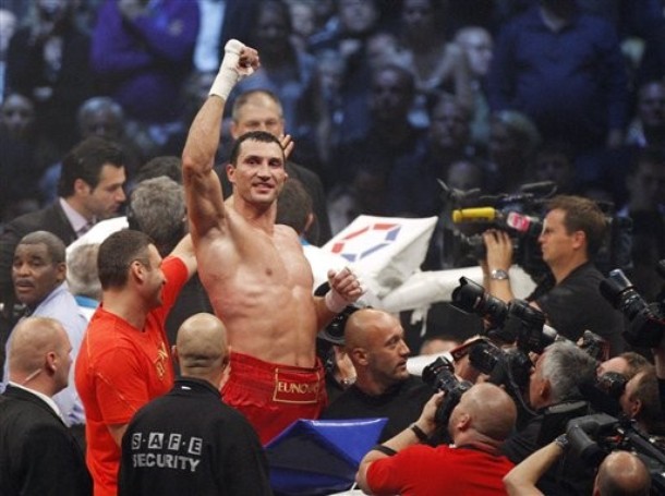 Wladimir Klitschko of Ukraine celebrates defeating Samuel Peter from Nigeria following their heavyweight title fight in Frankfurt, September 11, 2010. Klitschko won with a technical knockout in the tenth round.