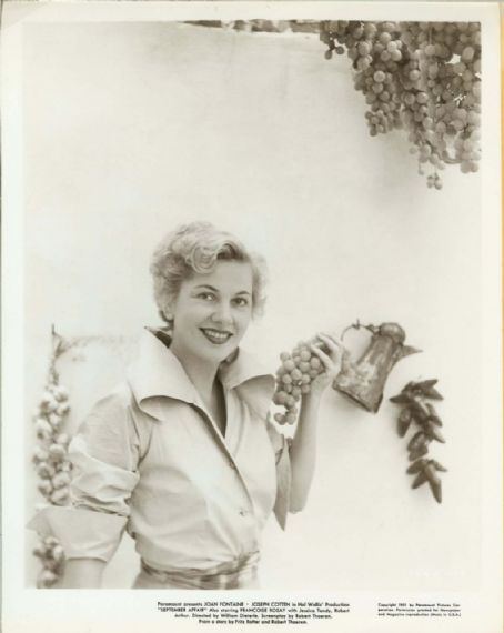 Joan Fontaine (born October 22, 1917) is a British American actress. She is the younger sister of actress Olivia de Havilland, also an Academy Award winner. The two sisters are among the last surviving female stars from Hollywood's Golden Age. Fontaine is the only actress to have won an Academy Award for a performance in a film directed by Alfred Hitchcock.