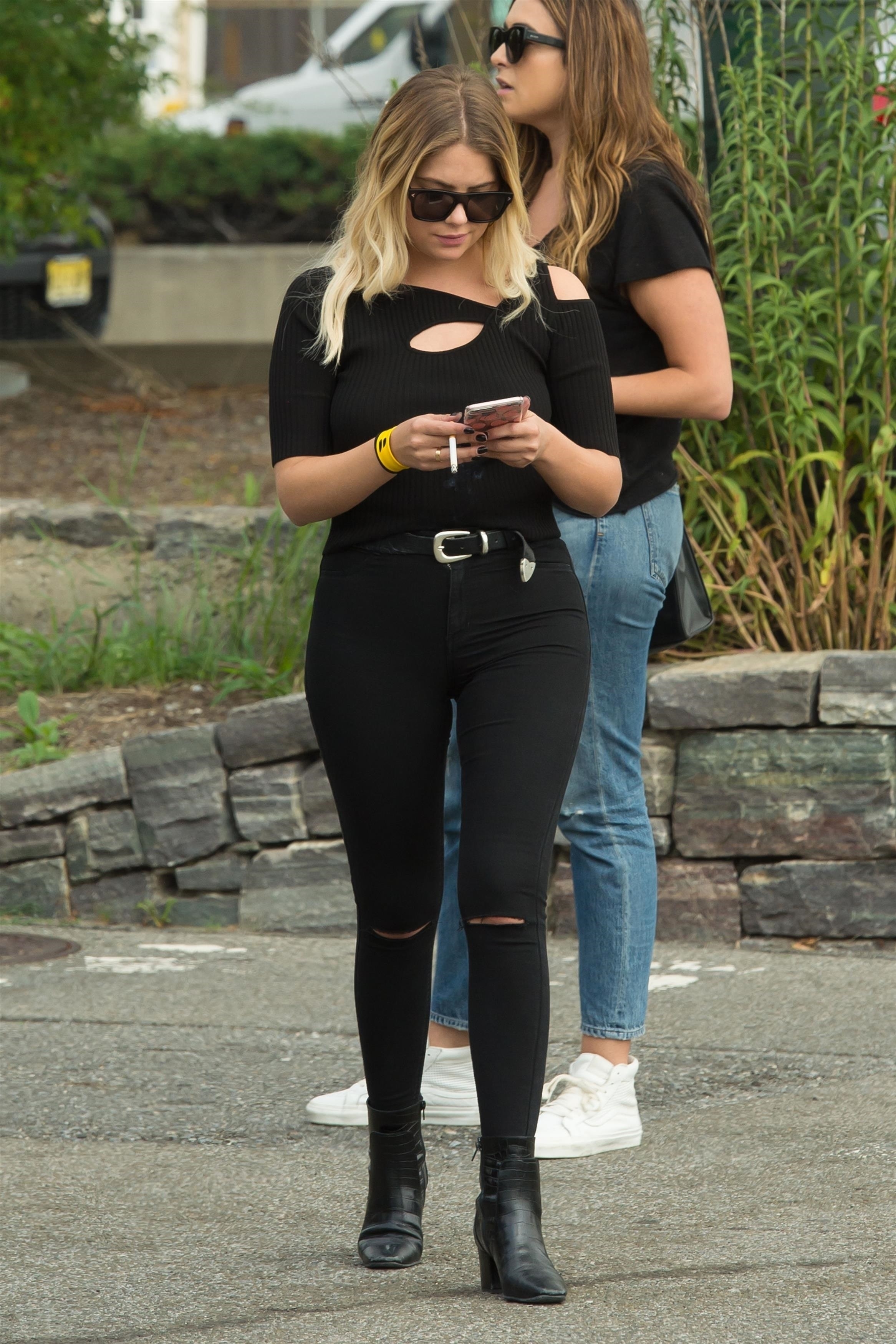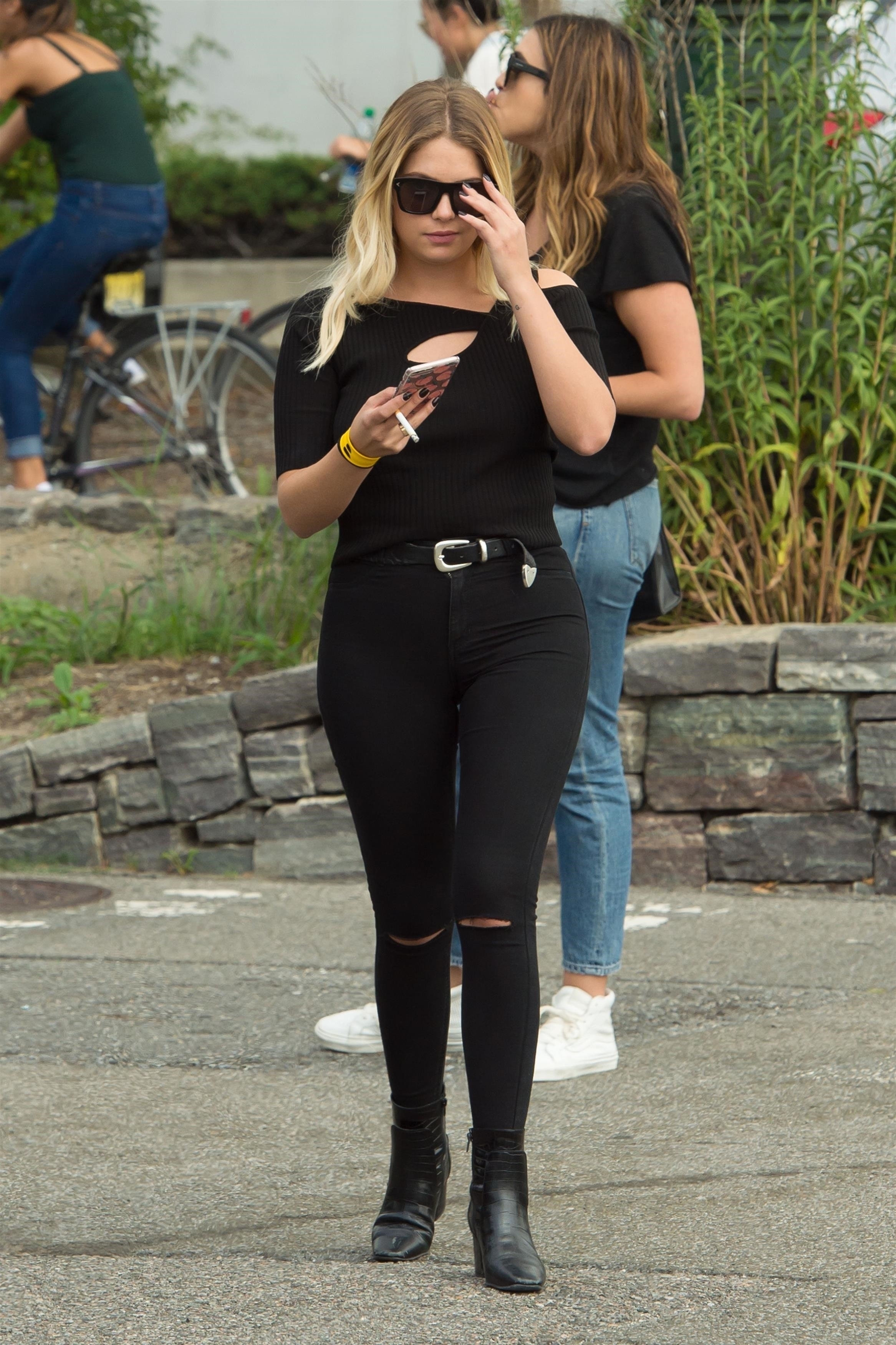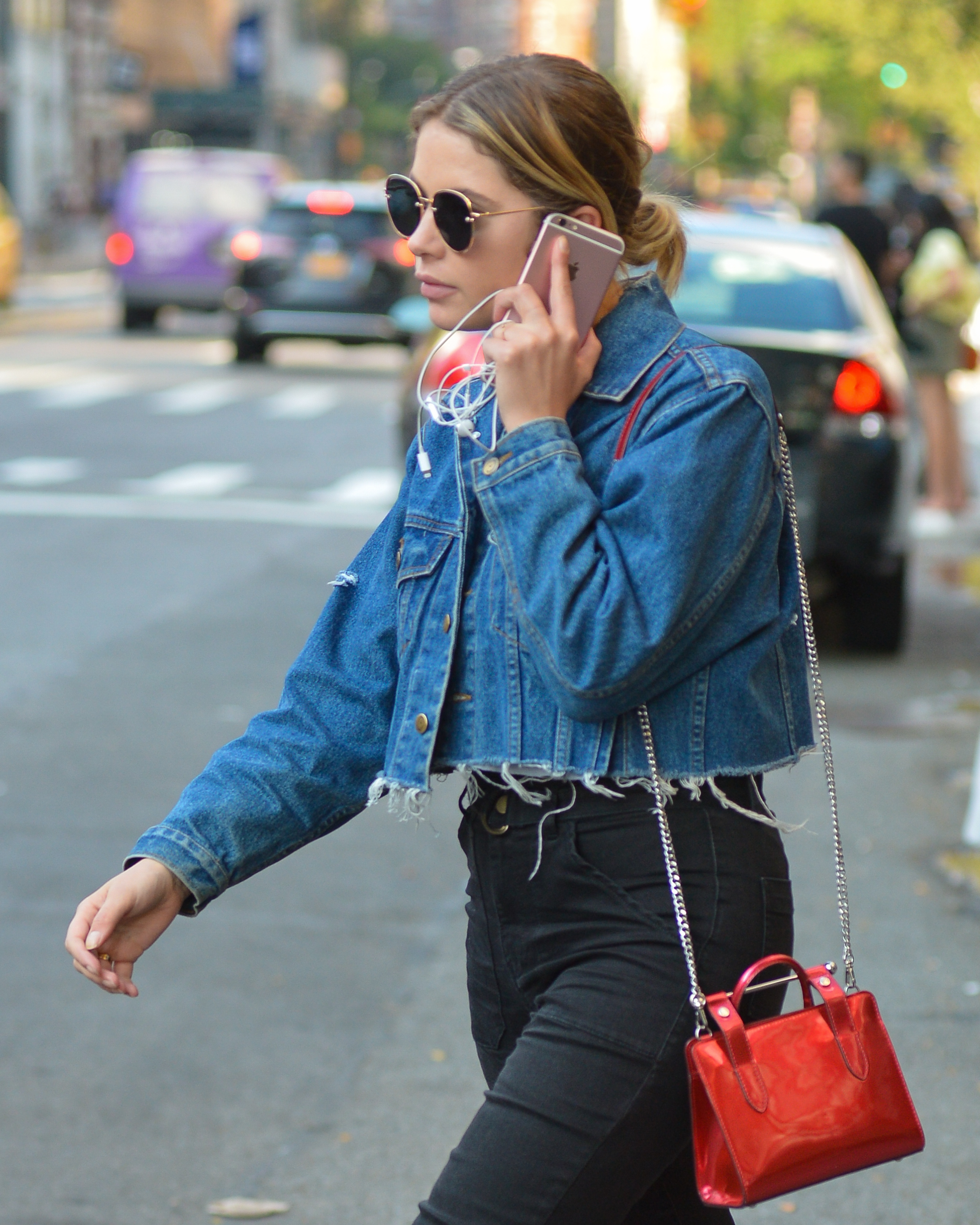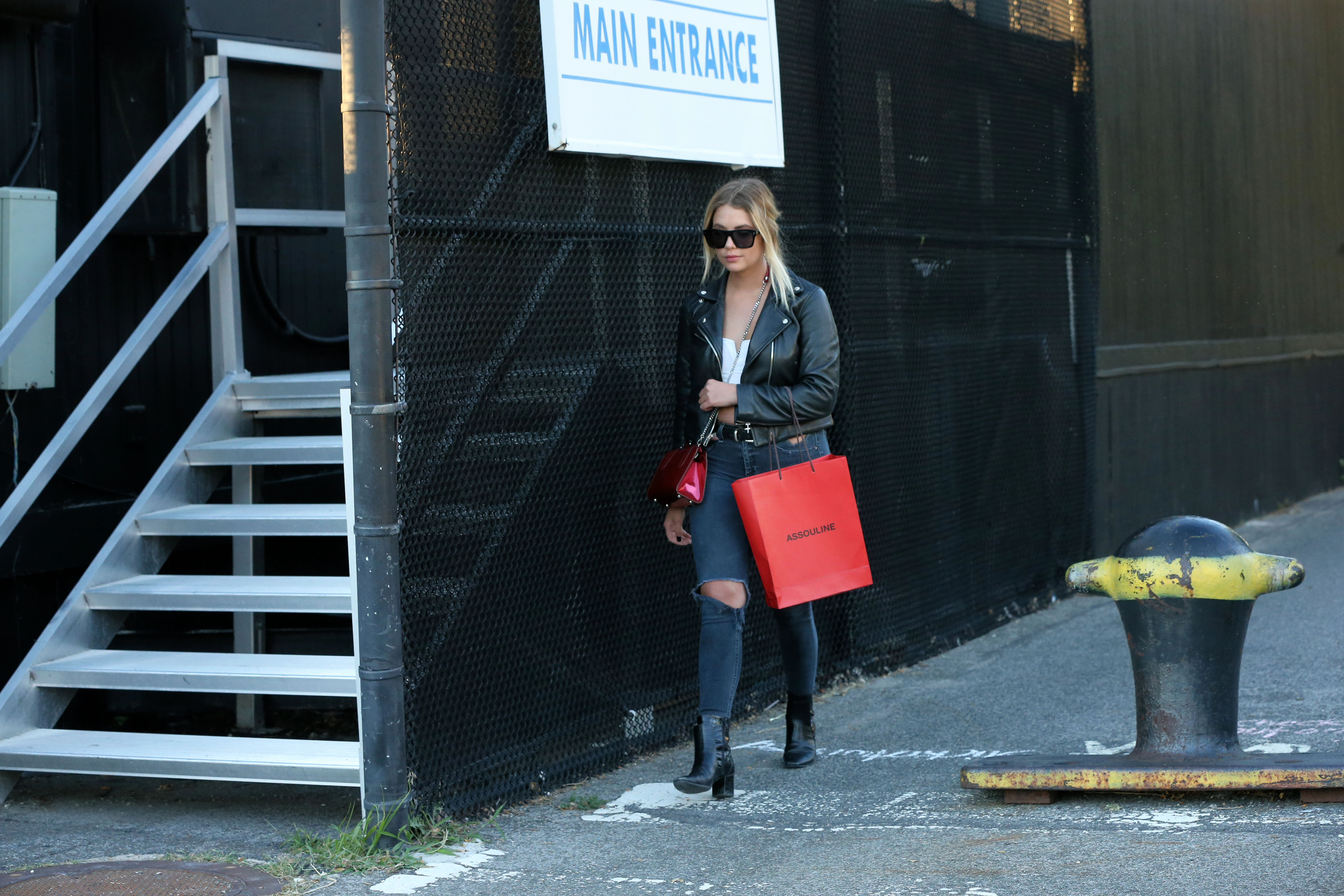 Ashley Benson wears a pink dress suit while arriving at Le Coucou French Restaurant in New York City - September 8, 2017