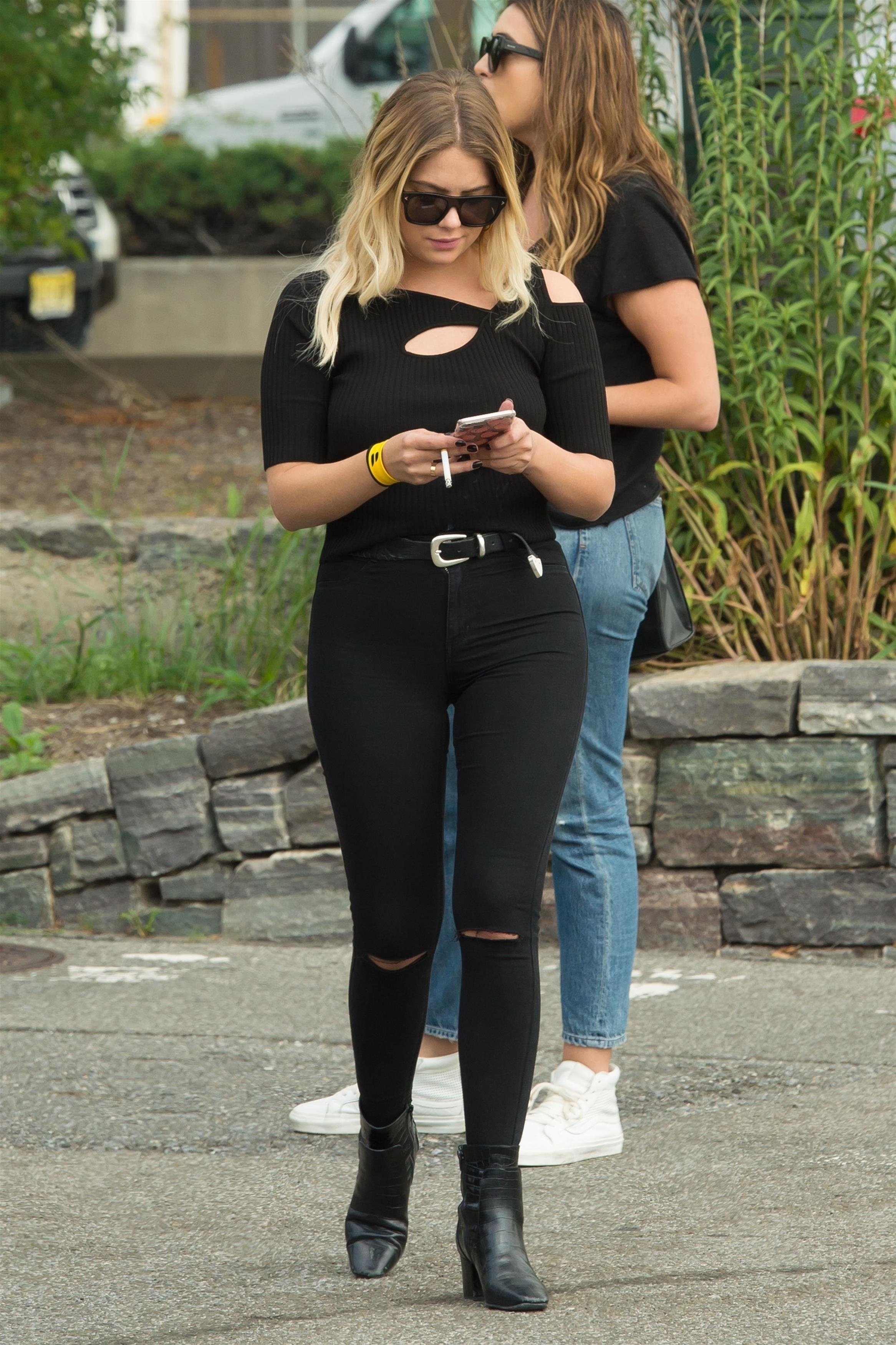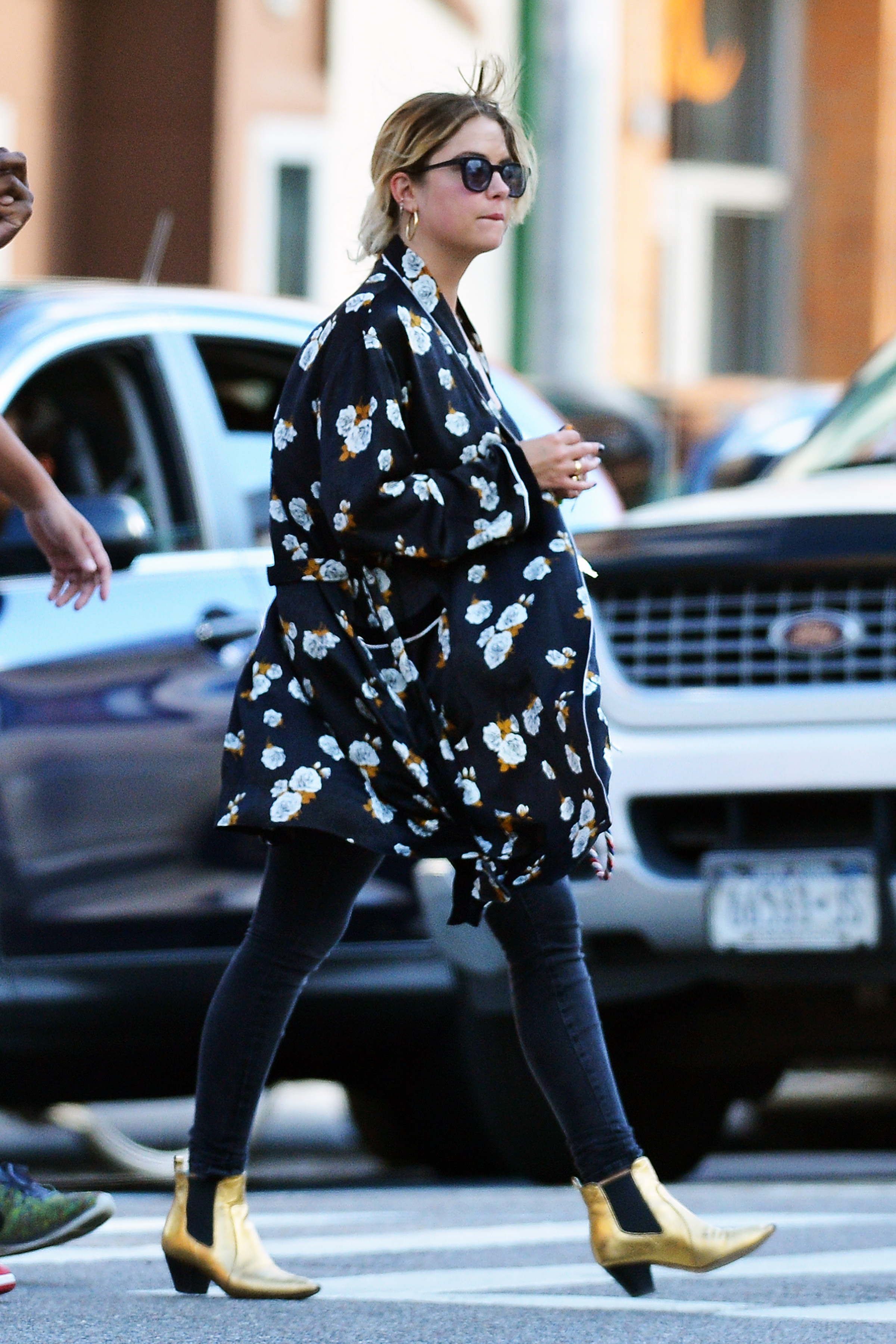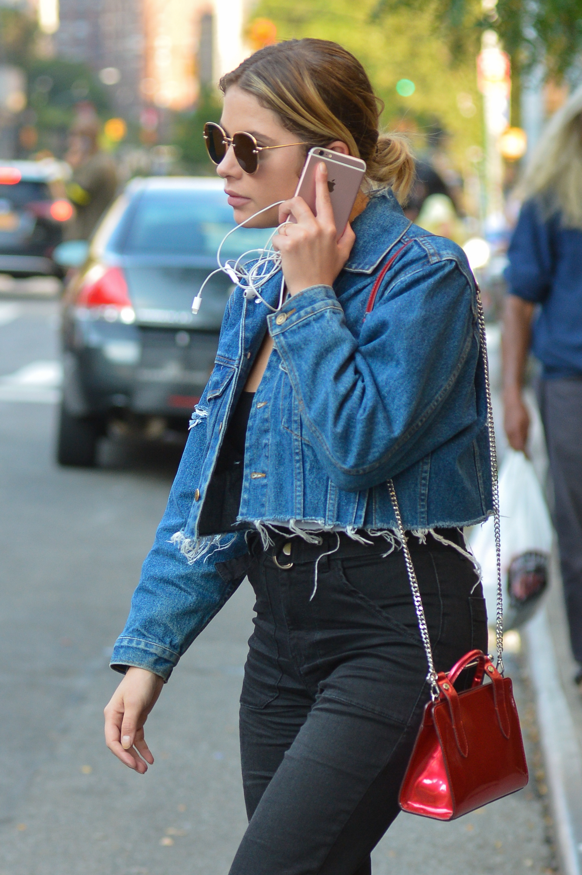 Ashley Benson wears a pink dress suit while arriving at Le Coucou French Restaurant in New York City - September 8, 2017