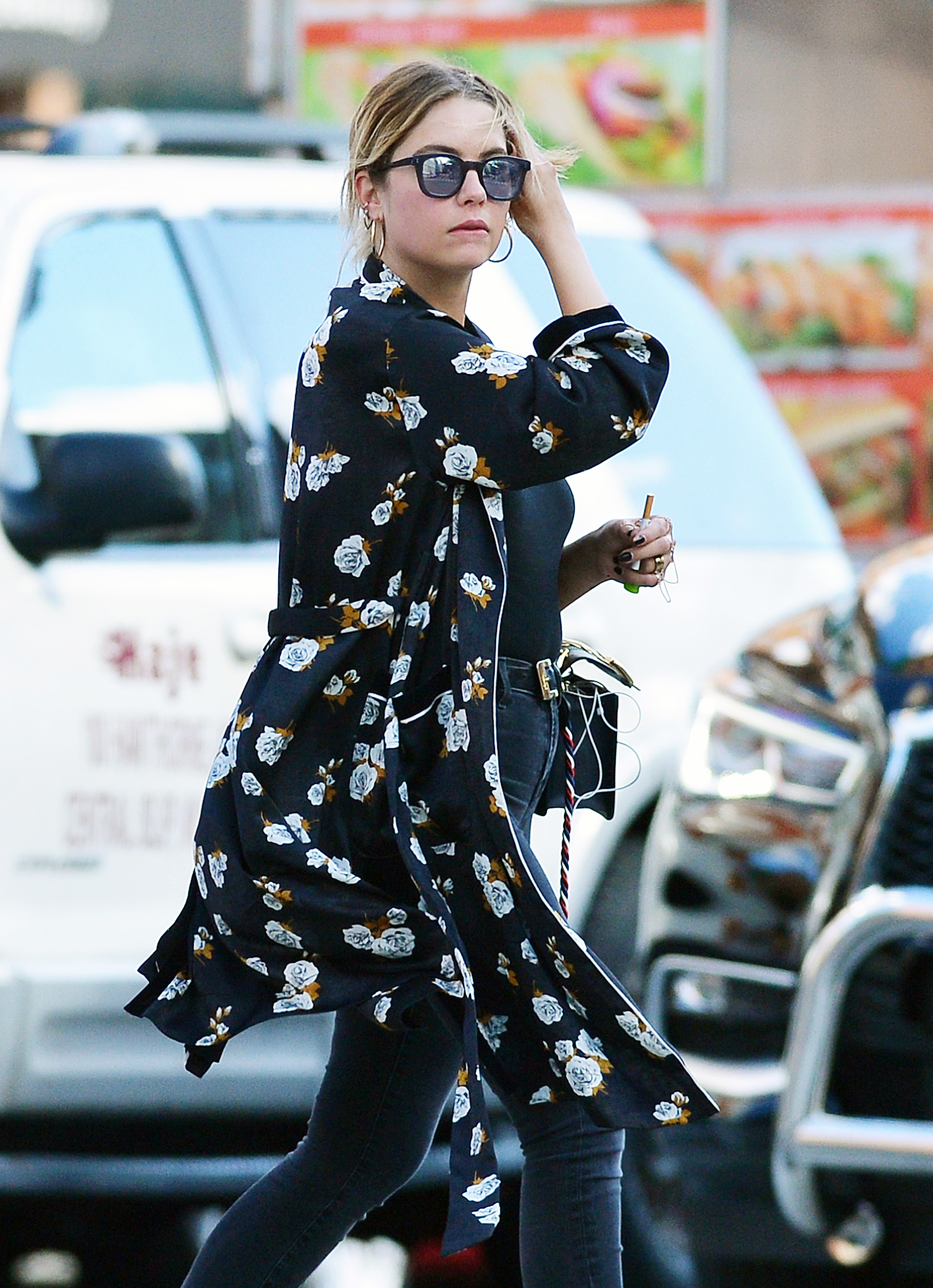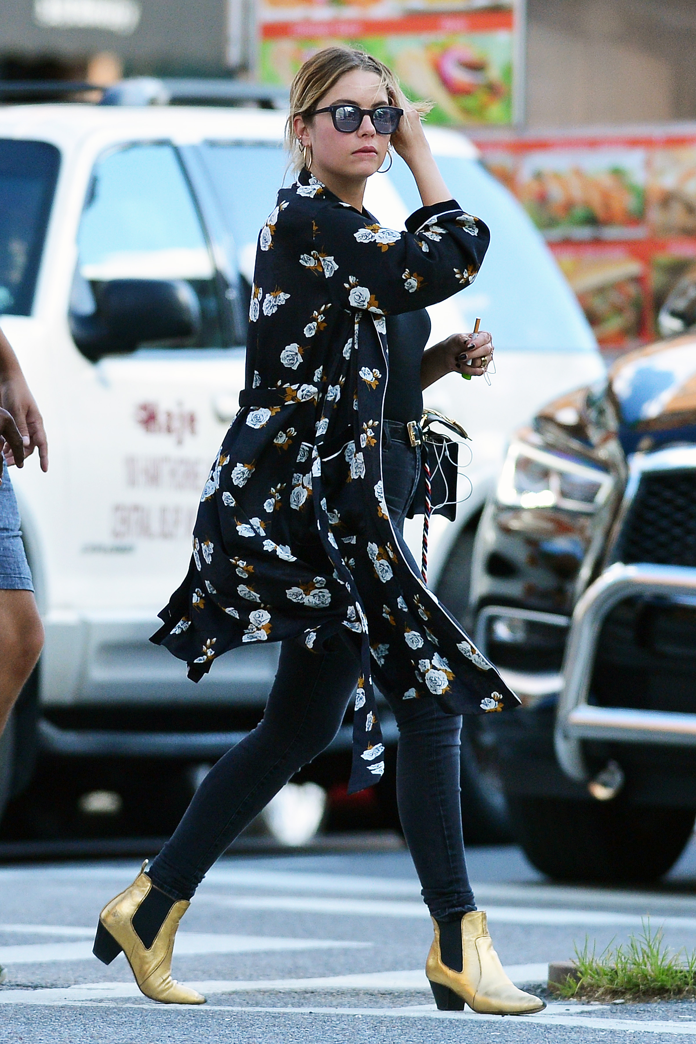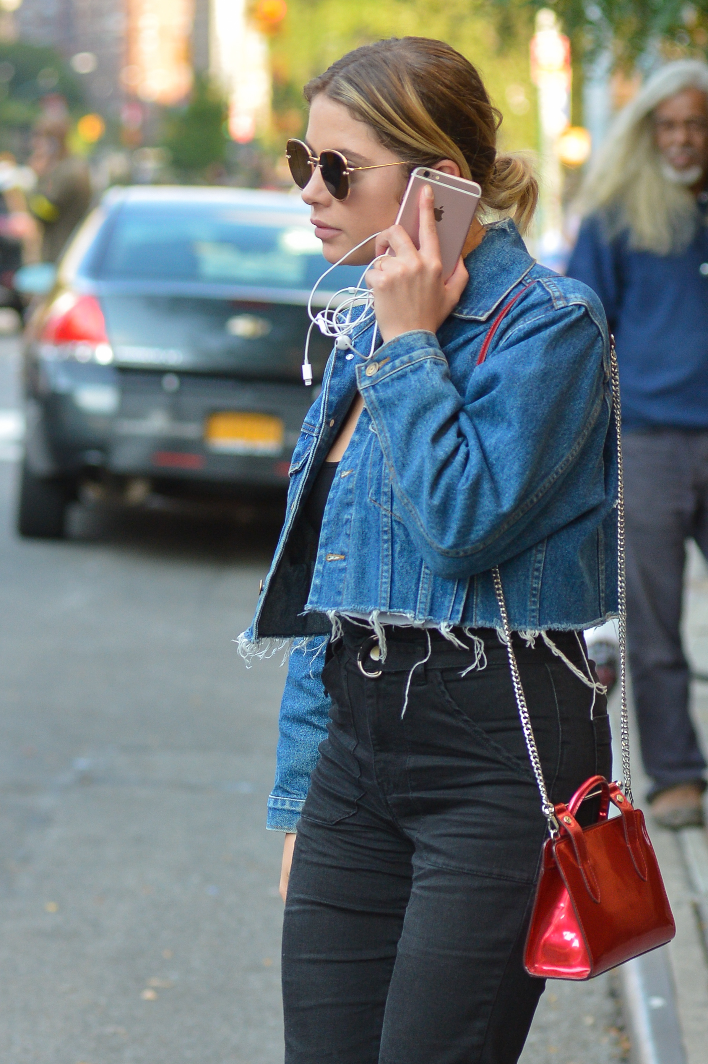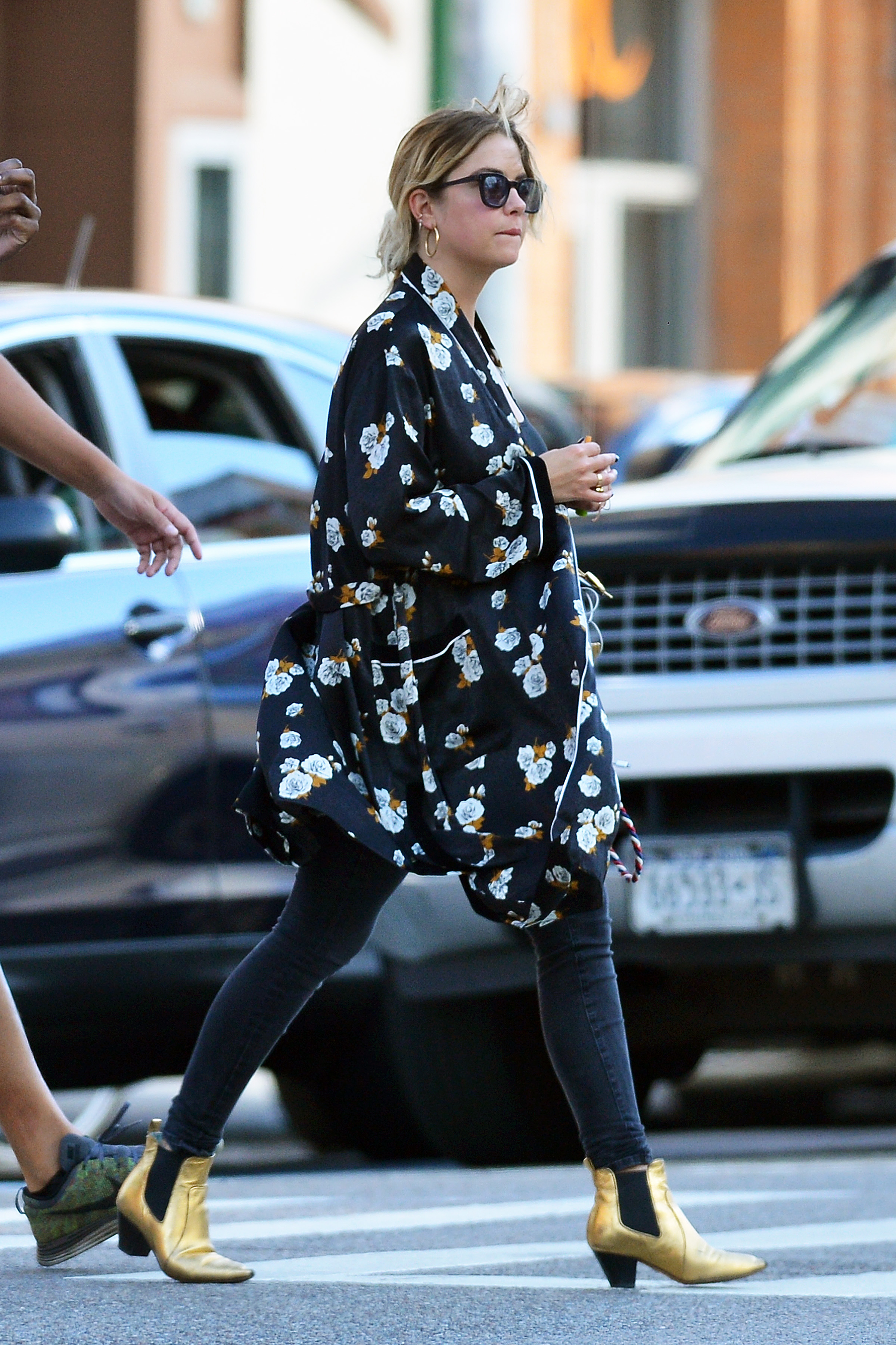 Ashley Benson wears a pink dress suit while arriving at Le Coucou French Restaurant in New York City - September 8, 2017