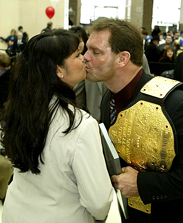 Eventually, the Benoit-Nancy on-screen relationship developed into a real-life affair off-screen. Because of this it is often joked that 'Kevin Sullivan booked his own divorce.'The two were indeed divorced in 1997. What's more, Sullivan lost a retirement match to Benoit. His intent had been to retire from in-ring action and focus on booking.