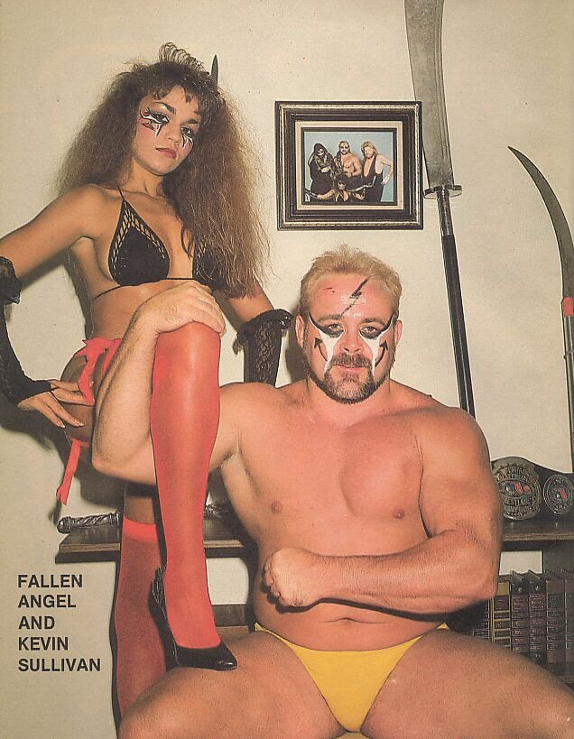 After graduating DeLand High School, Nancy got a job answering phones at an insurance agency. When George Napolitano needed a beautiful young girl for the cover of the June 1984 edition of the pro-wrestling magazine Wrestling All Stars, fellow photographer Bill Otten suggested the 20-year-old Nancy Toffoloni Daus for the role. Nancy, who had worked as a model, often sat alongside her then-husband Jim. She had also been selling programs at the Orlando shows and appeared as Para in the old "Apartment Wrestling" features. It was on this shoot where she met Kevin Sullivan, who eventually wanted her to be a part of his wrestling entourage. After months of convincing, Nancy finally became an on-air valet, taking the name Fallen Angel. She made her in-ring debut on July 7, 1984 at the Lakeland Civic Center in Lakeland, Florida for Florida Championship Wrestling.
