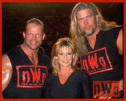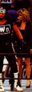 In January 1996, Miss Elizabeth returned to wrestling as a valet for Savage. She later turned against Savage and became Ric Flair's valet in the Four Horsemen. She later turned against the Four Horsemen and joined the New World Order (nWo) alongside Savage and Hogan. In June 1998, she parted ways with Savage once again by joining Hogan's side of the nWo, nWo Hollywood. Then, she accompanied Eric Bischoff on his way to the ring for the next few months.