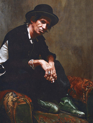 Keith Richards (born 18 December 1943) is an English guitarist, songwriter, singer, record producer and a founding member of The Rolling Stones. As a guitarist, Richards is mostly known for his innovative rhythm playing, with his ability to develop and play catchy chord sequences earning him the nickname "The Human Riff". In 2003 he ranked 10th on Rolling Stone magazine's "Rolling Stone's 100 Greatest Guitarists of All Time". With songwriting partner and Rolling Stones lead vocalist Mick Jagger, Richards has written and recorded hundreds of songs, fourteen of which are listed by Rolling Stone magazine among the "500 Greatest Songs of All Time".