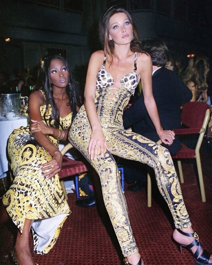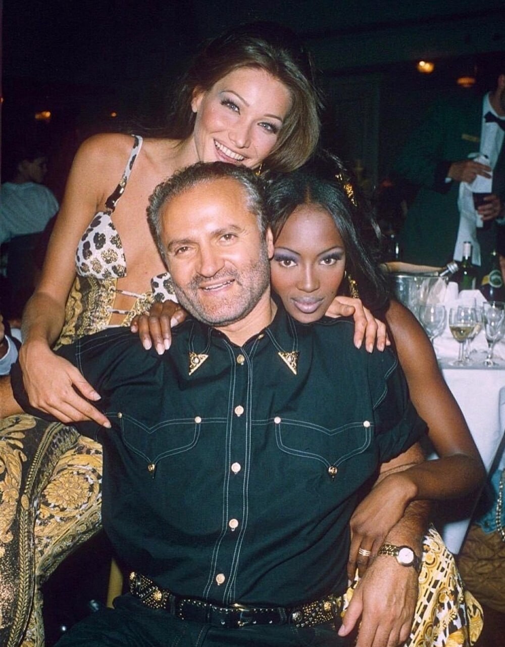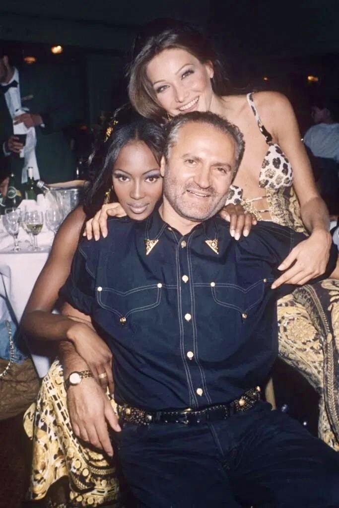 Carla Bruni and Naomi Campbell with Gianni Versace (Save The Rain Forest Gala in London 1992)