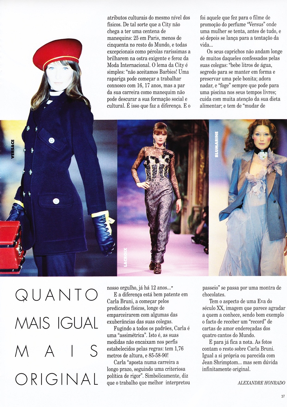 Carla was in every single fashion magazines in the 90's (I have all the mess in my closet to prove it!) She was "the model" by excellence. Not very versatile but extremely photogenic and amazing facility to pose to give to her body (with or without clothes) such a great elegance. I used to adore her because of her amazing personality - smart, intelligent & funny - And she was surely one of the top 10 most famous models during the supermodels era.
