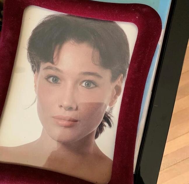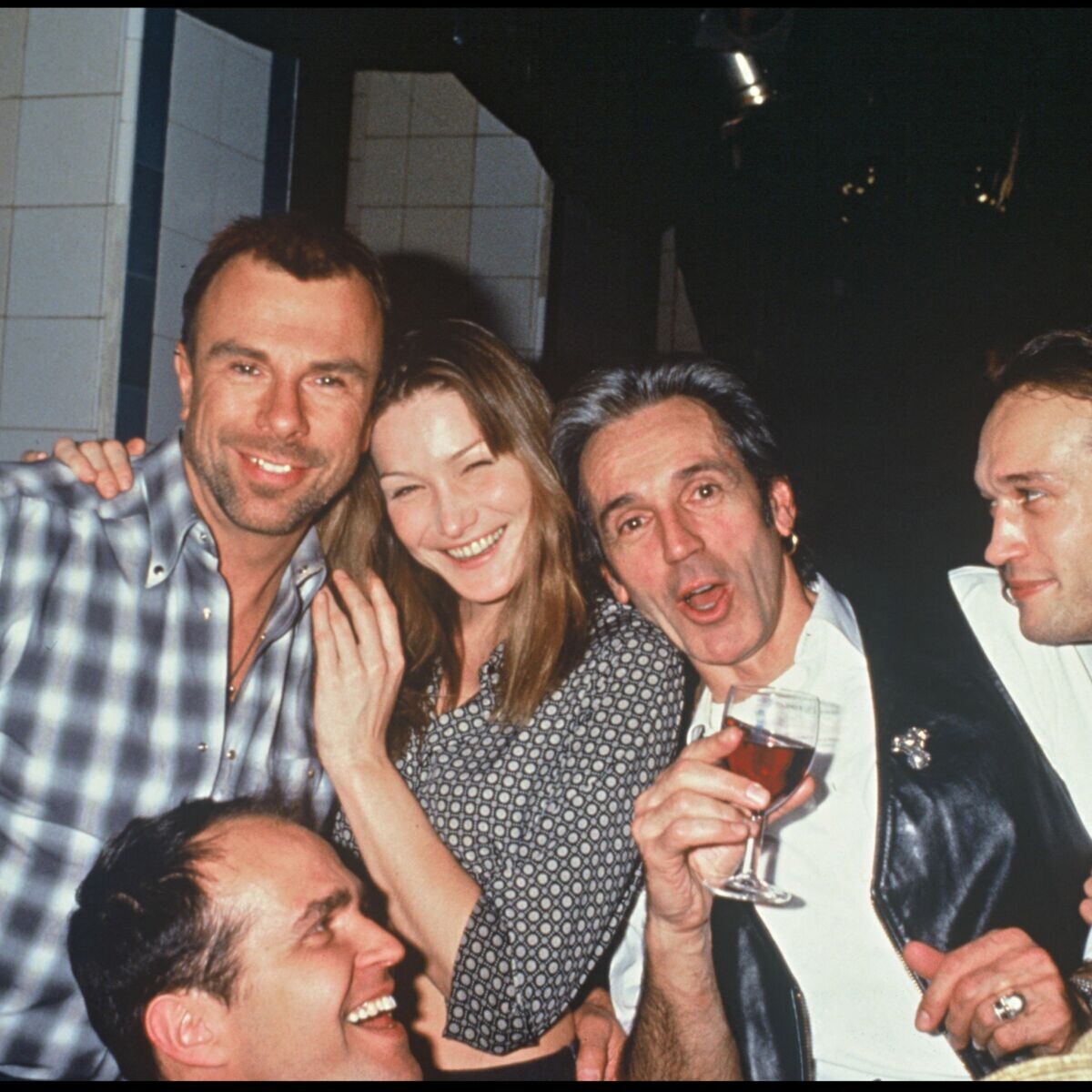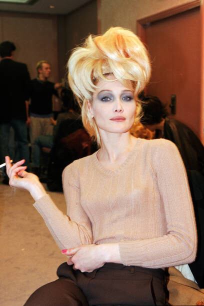 Carla Bruni poses backstage during the Herve Leger Ready to Wear Fall/Winter 1996/97