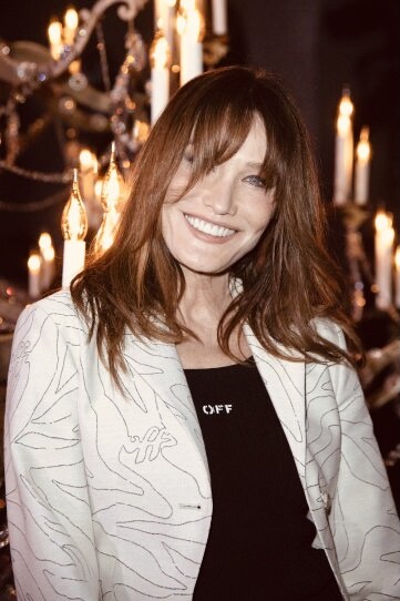 @carlabruniofficial arriving at the @off____white Womenswear Fall/Winter 2022/2023 show as part of Paris Fashion Week