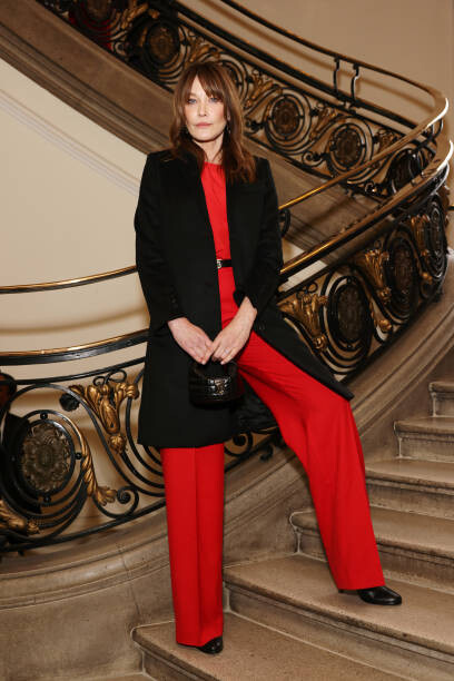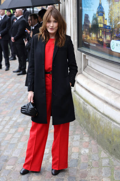 @carlabruniofficial arriving at the @burberry autumn/winter 2022